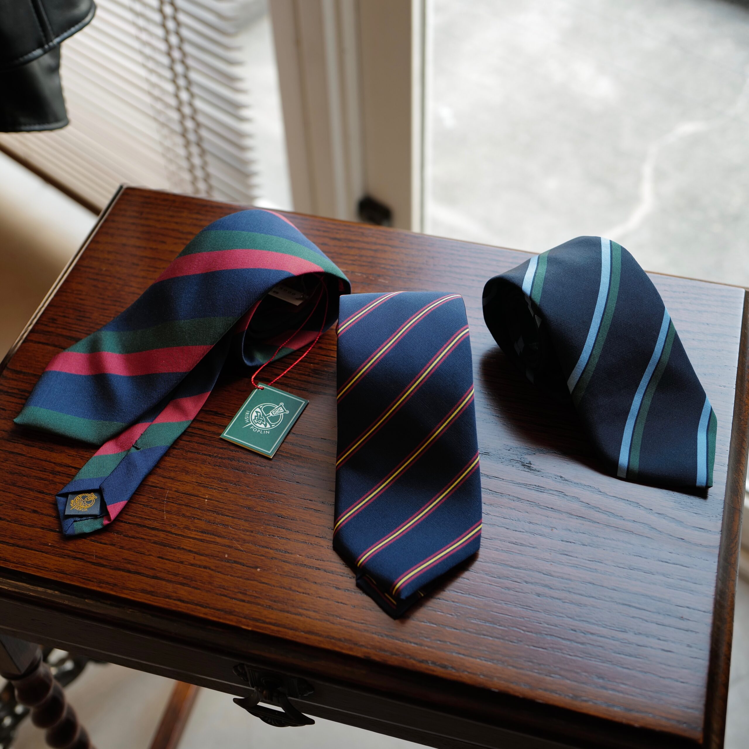 ご用意したのは、英国トラッドの王道レジメンタル。ご提案出来るのは3種類となります。