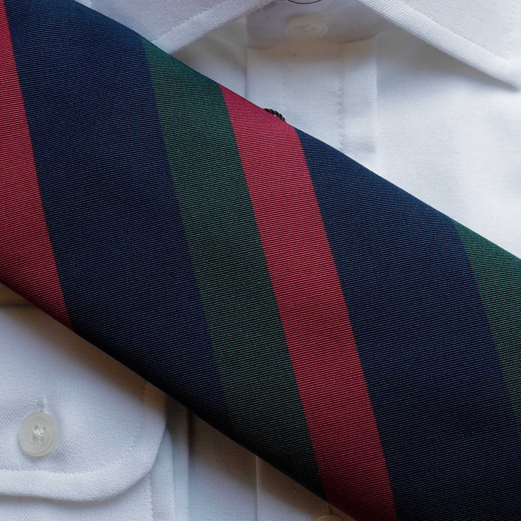 英国の軍隊において各連隊に伝わる連隊旗の縞をそのままネクタイに採用したものです。