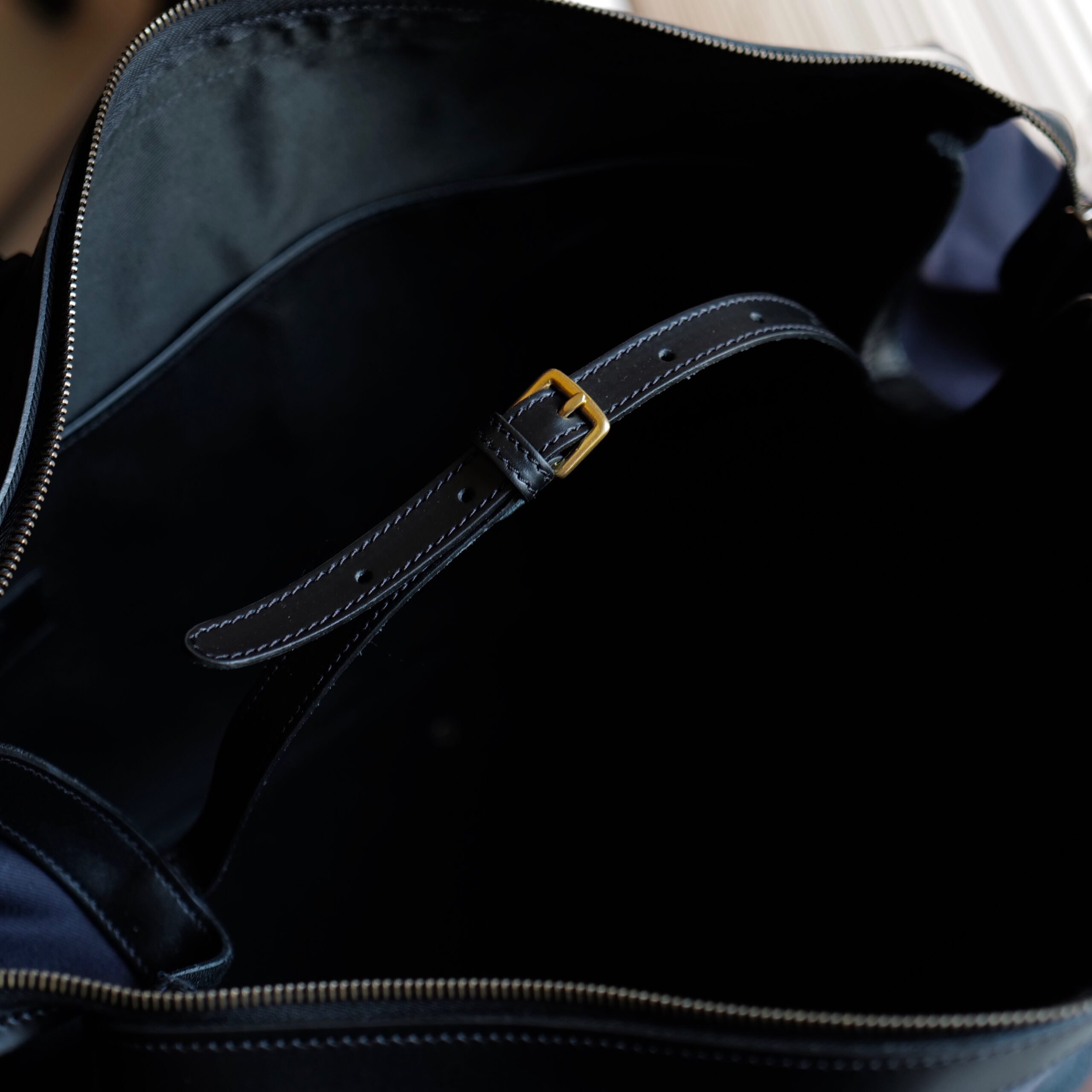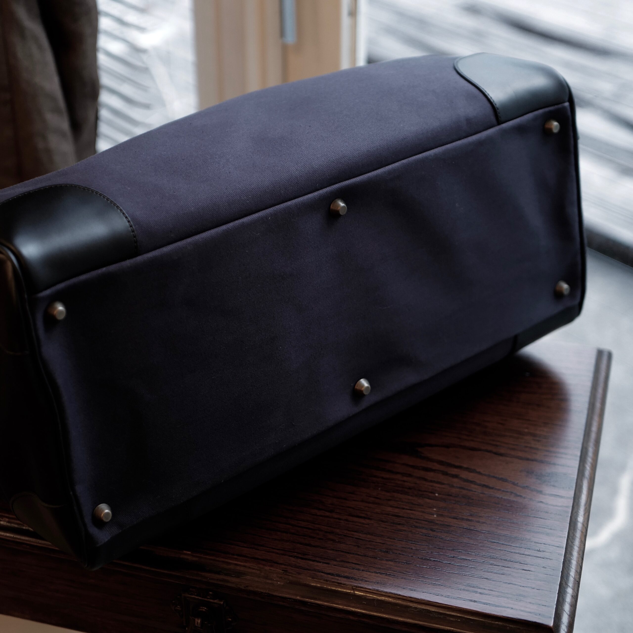 配色は上品さが際立つネイビーキャンバスに重厚感のあるブラックレザー。