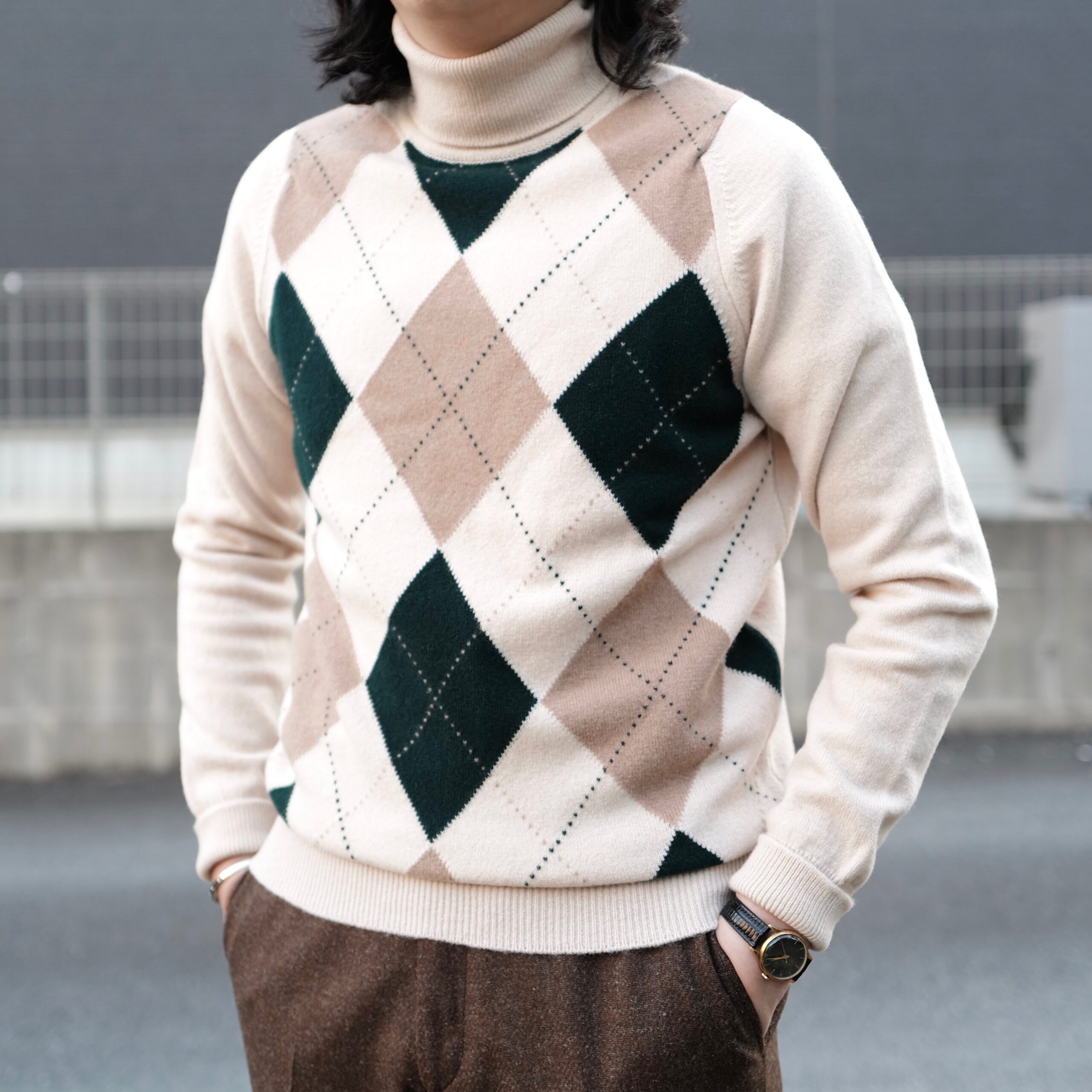続いては、サイズがほとんど残っていませんが、アーガイル柄タートルネックもご用意しました。