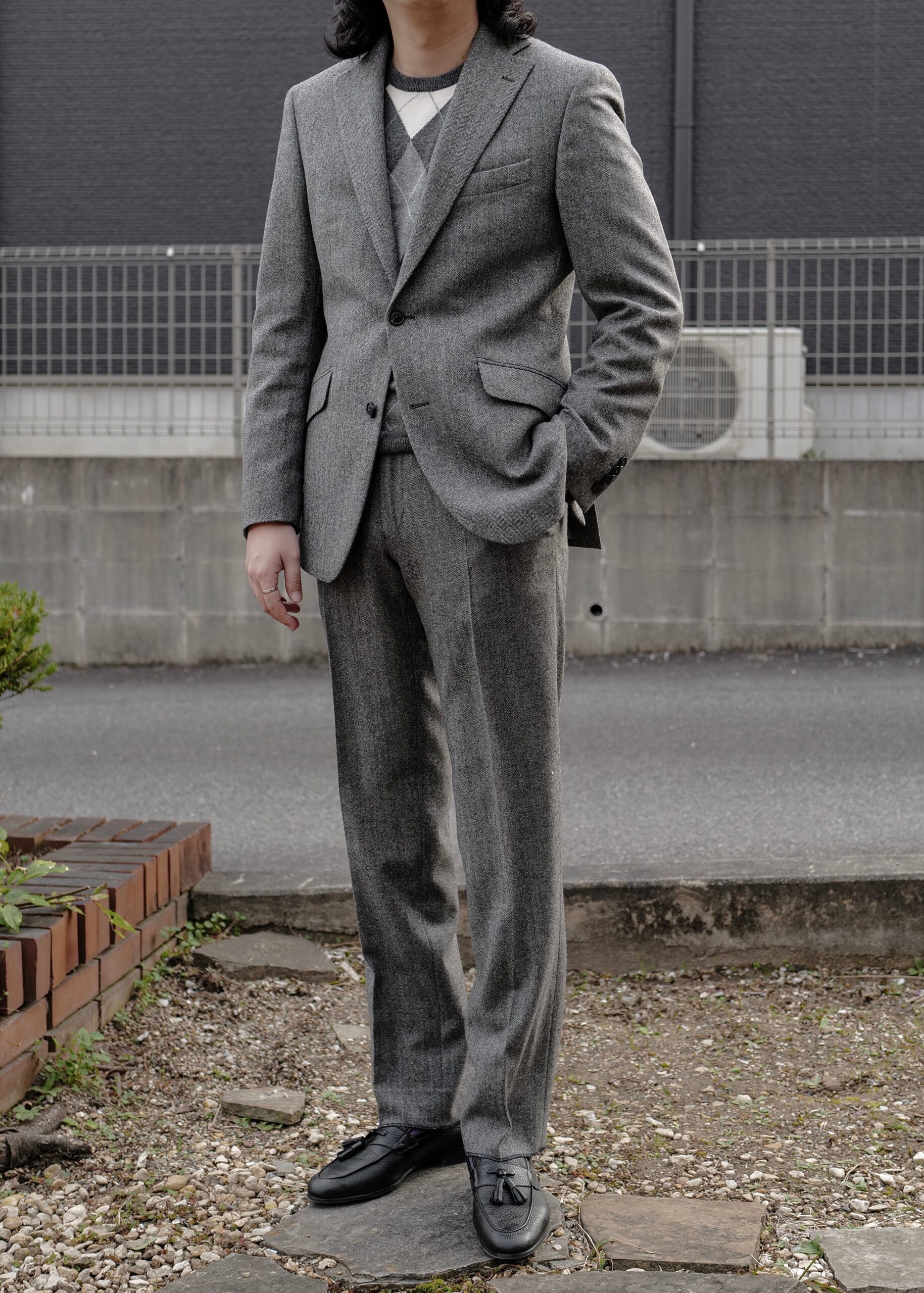 インに着用しているシャツもコーディングスですが、合わせているスーツはセットアップとなっています。(上下別売)
