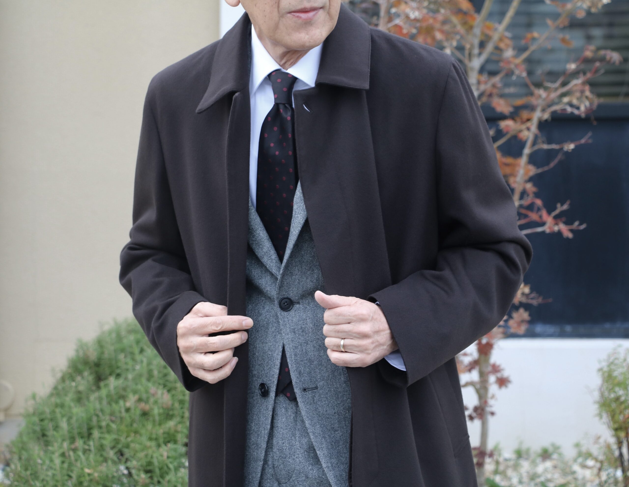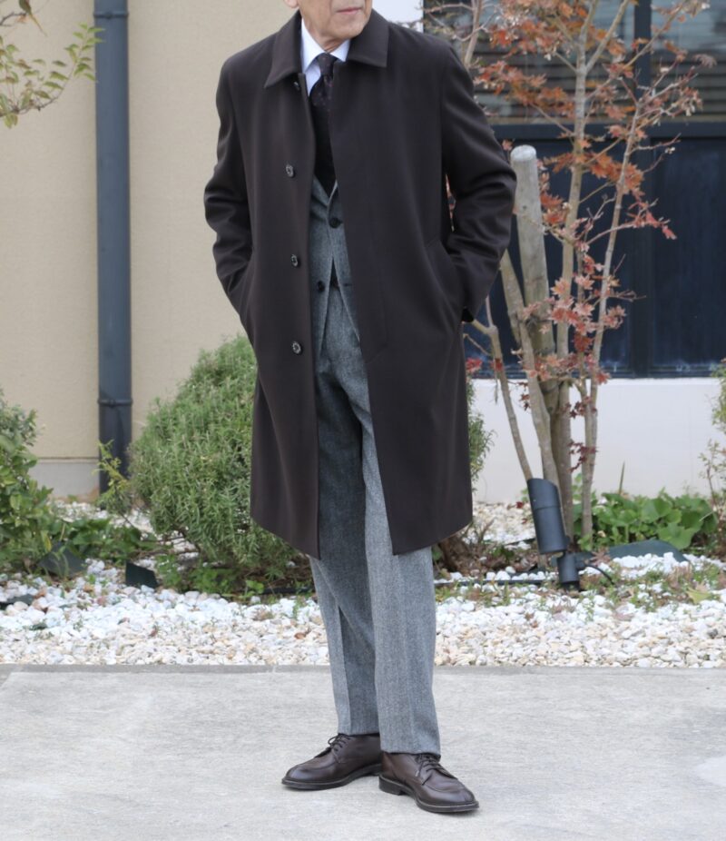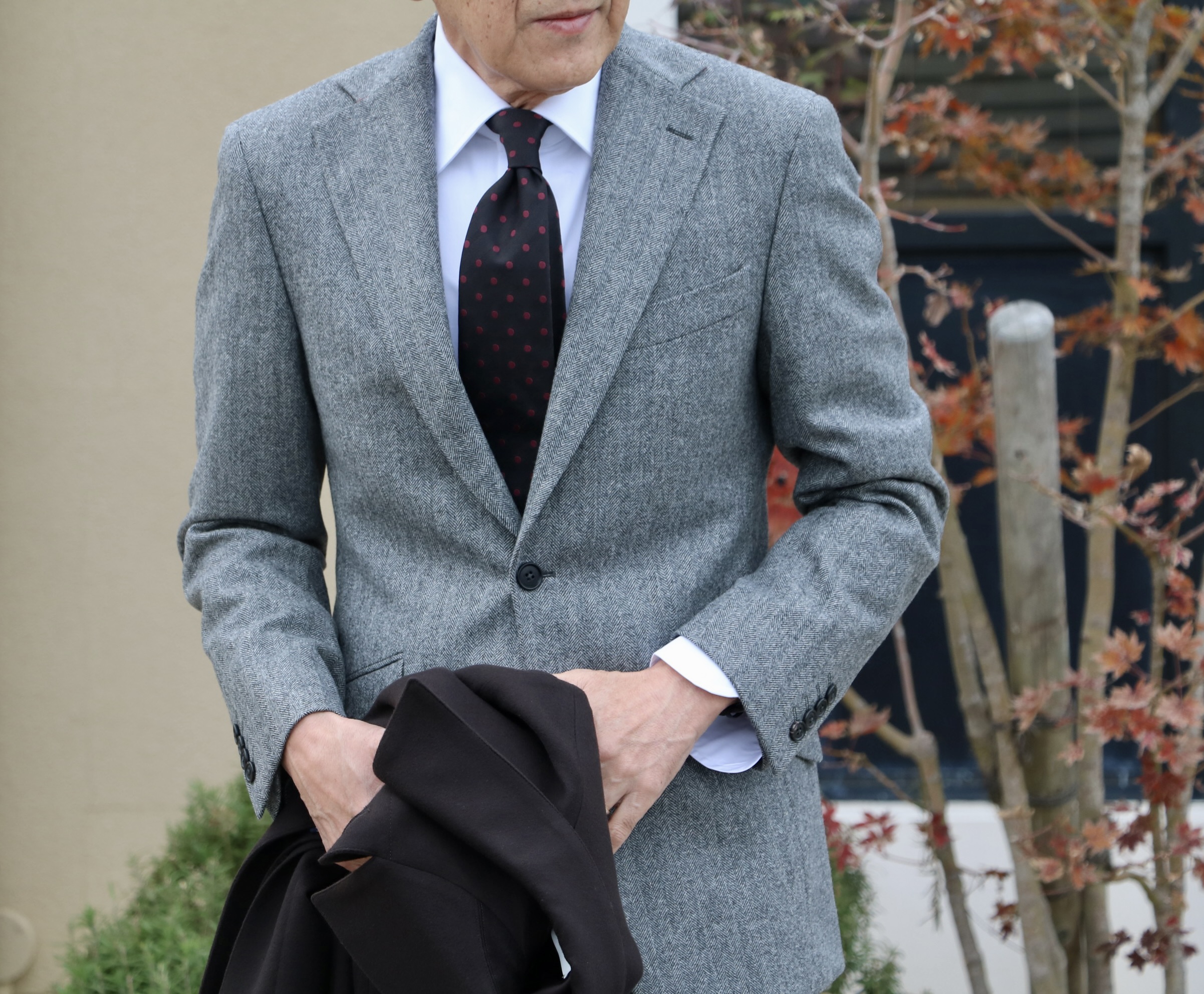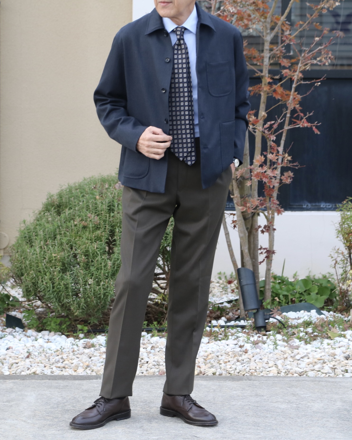 INVERTERE/インバーティアの「Coverall jacket」サキソニーウール地カバーオールジャケットがいい雰囲気です。ネクタイ、パンツともにイタリアですが、英国好きの私が選ぶクラシコ。うまく調和してくれているはずです。