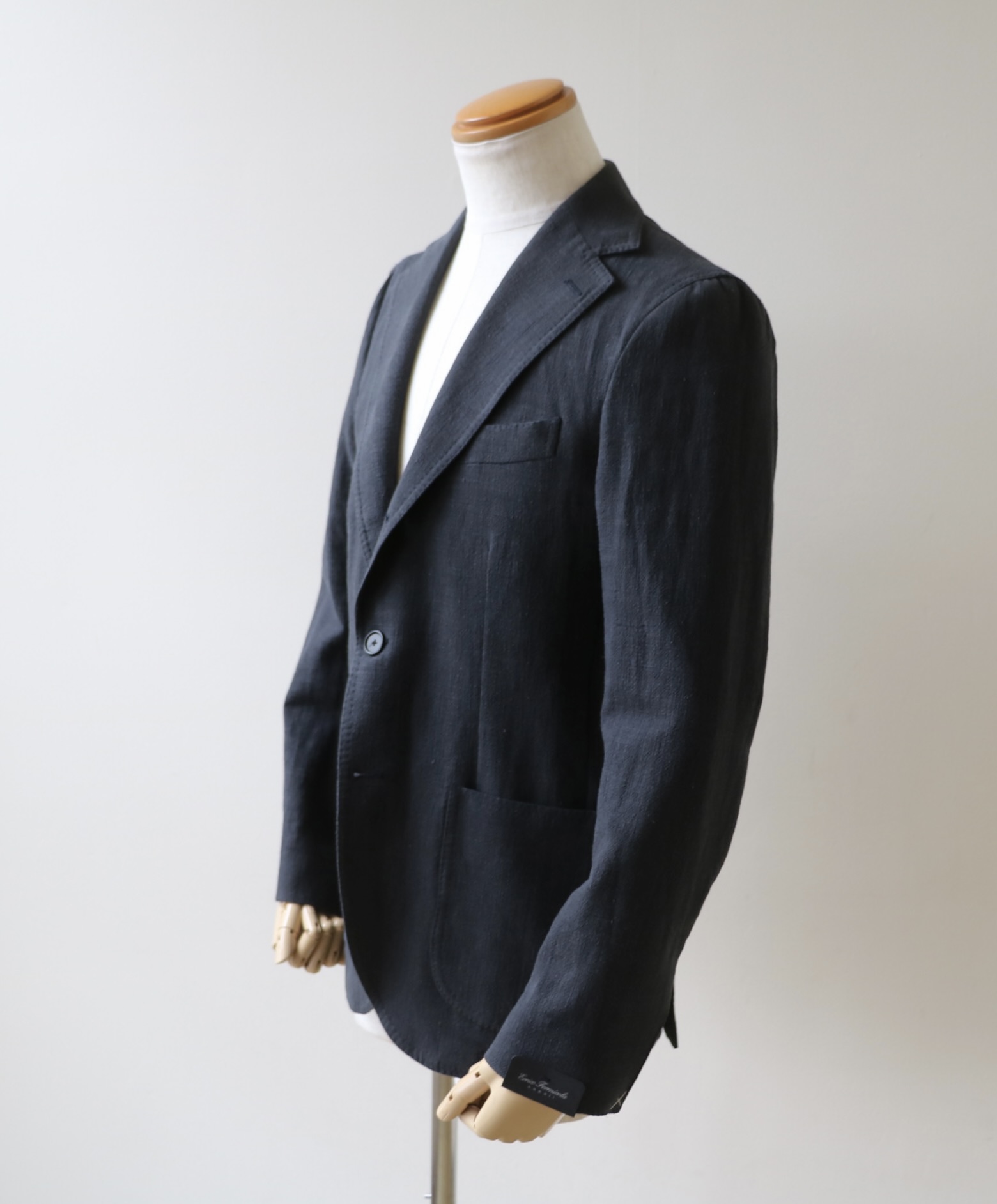 先日ご提案させていただいた【SIPARIO by STILE LATINO/シパーリオ バイ スティレラティーノ】のネイビージャケット。本日は新作のホップサック(写真後ろ)をご紹介します。