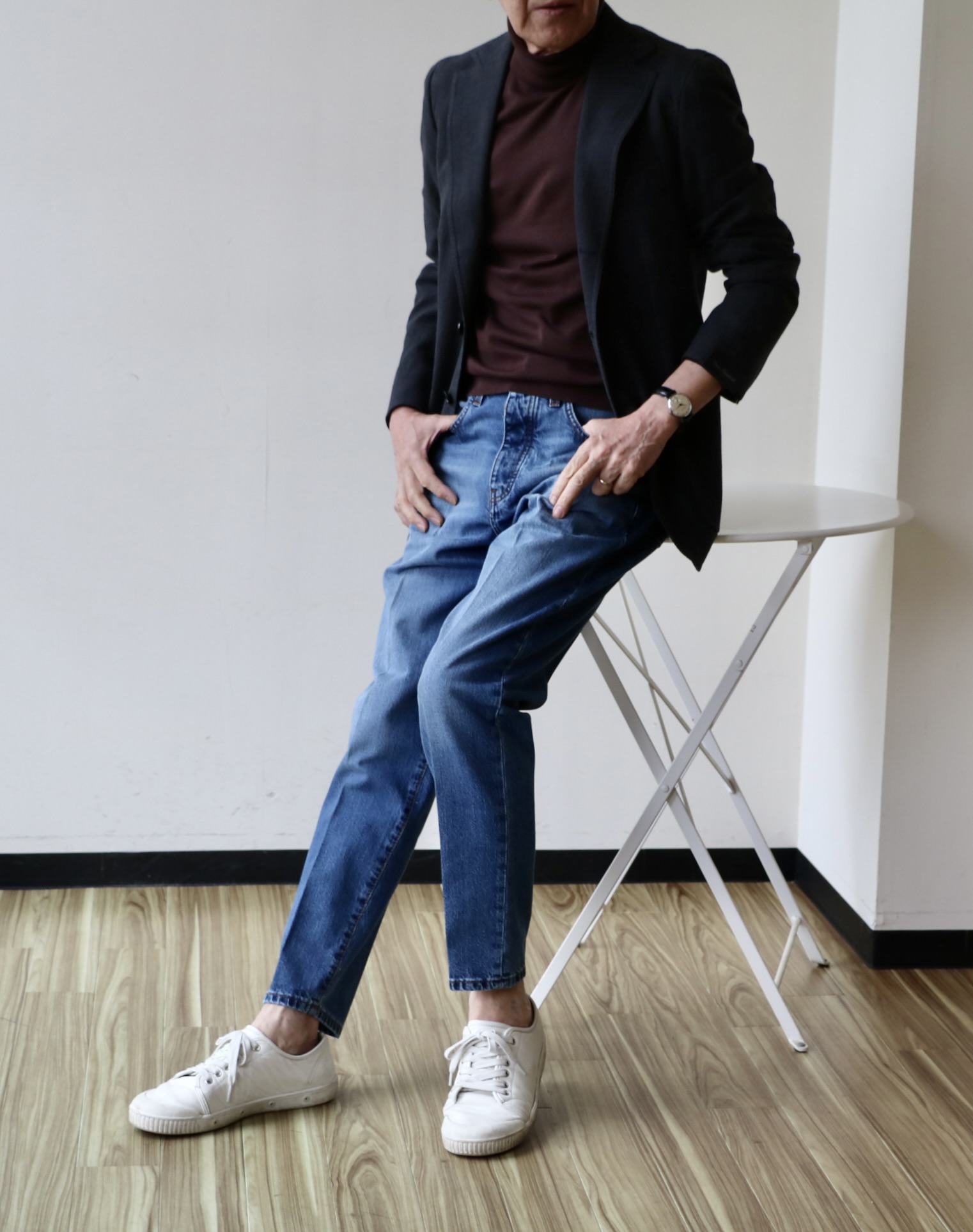 下のコーディネートでは、グレインレザー仕様タッセルローファー。まずはブラック、でもマリンもいいと思います。