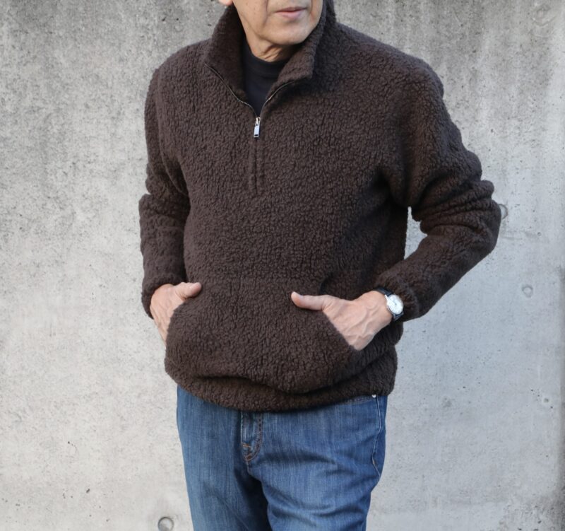 すでにご案内済みのベアは【DANIELE FIESOLI/ダニエレフィエゾーリ】のループヤーンハーフジップニットです。色で言えば、ヒグマでしょうか。
