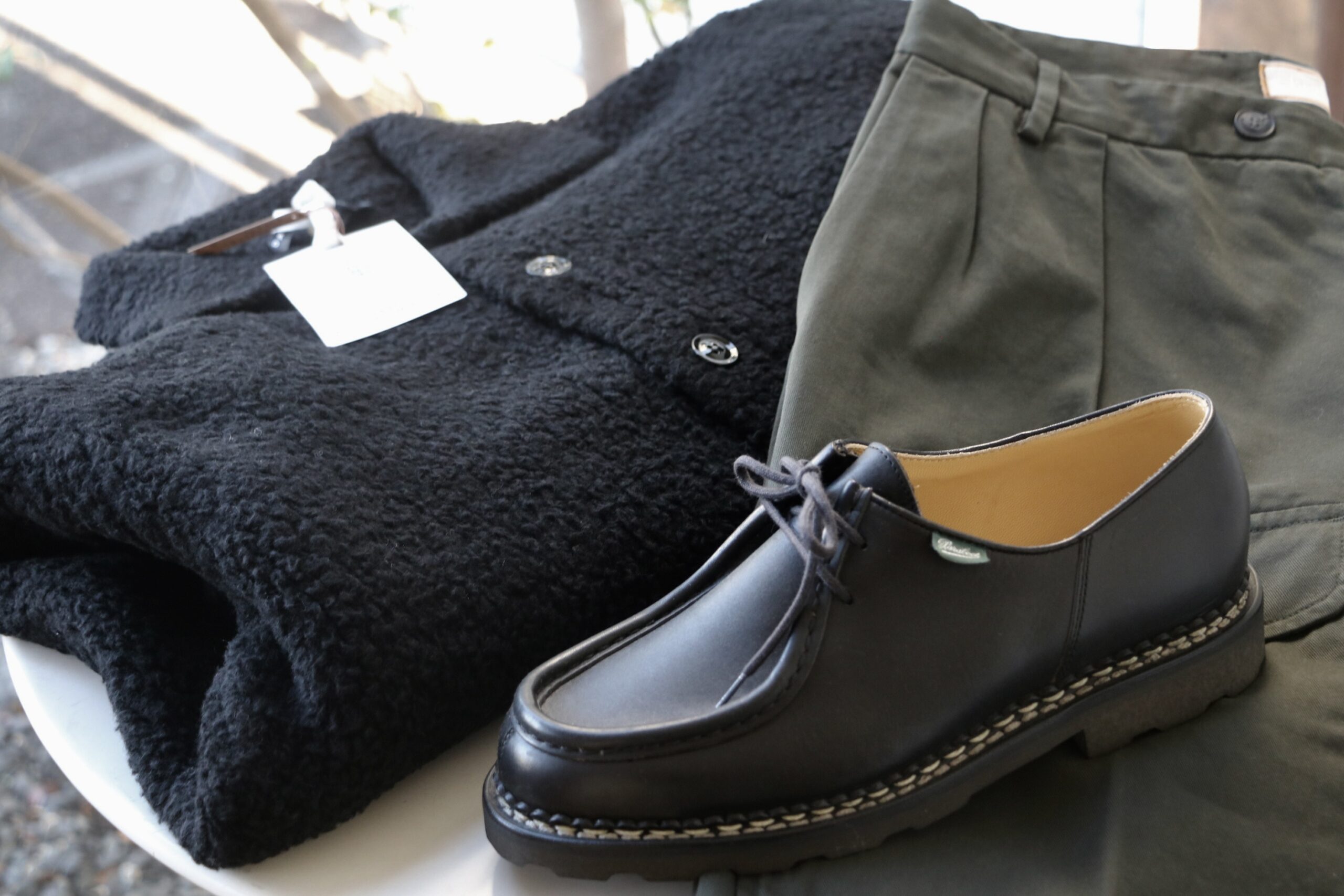 個人的に気に入っているコーディネートです。インナーはなんとかなる、靴は持っているから、シャツとパンツを揃えれば、このスタイルで街を歩ける。寒くなったら、これ。車での移動であれば、これが重宝する。
