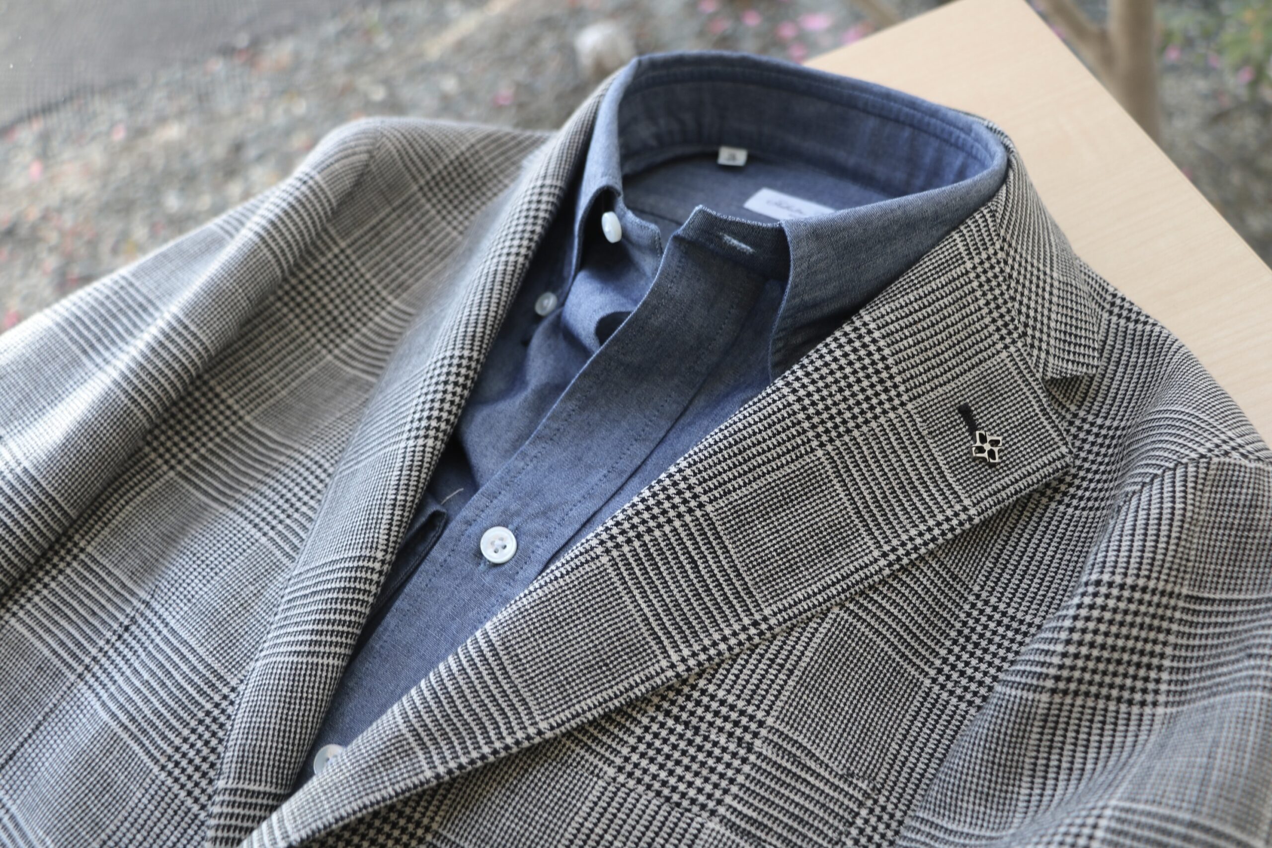 昨日に続き、【Salvatore Piccolo/サルヴァトーレ・ピッコロ】です。シャンブレー好きのY様も早速駆けつけてくださったB.D(ボタンダウン)のシャンブレーシャツです。本日もTAGLIATOREのジャケットを使ってご案内していきます。