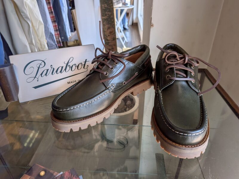 撮影後に入荷してきたParaboot/パラブーツの「BRIAC/JANNU」。色が素敵です。デッキシューズ「BARTH」をより強化したモデルです。間に合っていれば、これを使ってコーディネートしても良かったかもしれませんね。また、詳しくご紹介いたします。