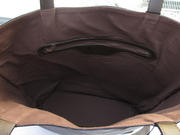 内側には、キャンパス生地が貼られており、小物収納に便利なファスナー式のポケットが、1つ付いています。