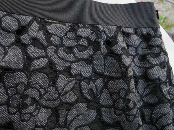ウール混のラッセルレースを使用したスカート。裾をスカラップ状に断ち落とし、レースの柄を活かしてシルエットは、シンプルに仕上げてあります。ジージャンやパーカーなどのカジュアルなアイテムに合わせても◎。コーディネイトを色々楽しんで頂ける1枚ですね。