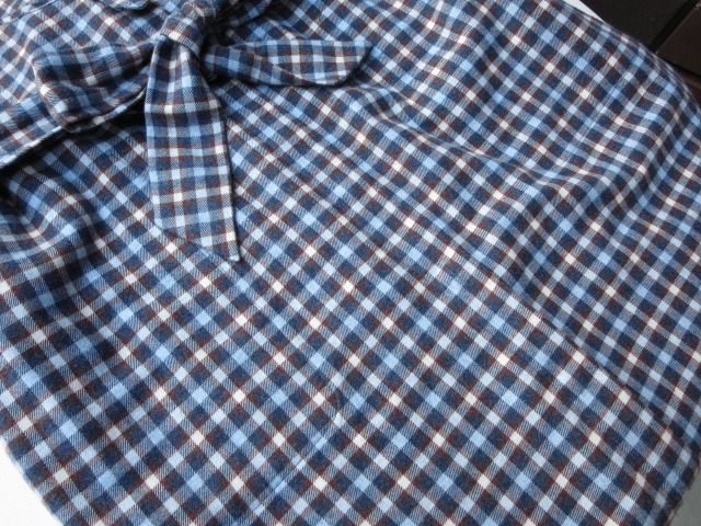 上のワンピースと共地のブラウスもあります!衿が、チョコンと小さくて、またまた可愛いのです。こちらも胸元の切り替えがあり、清楚でクラッシクな雰囲気。ついつい人気のミモレ丈のスカートを合わせたくなってしまいます!勿論、パンツでもOK!重ね着シーズンには、ポイント使いに良い感じです。クルーネックニットから、可愛らしい衿を覗かせても素敵ですね。