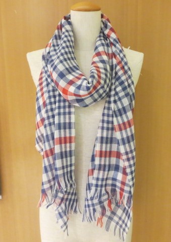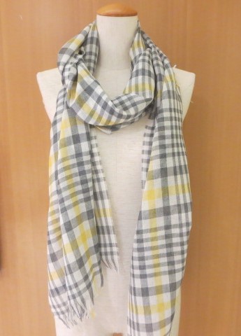 同じく柔らかなメリノウールを使用したチェック柄のストールも大人可愛い雰囲気です。ちょっとアクセント使いにもピッタリです。生地が、しなやかで上質なので、とても上品な雰囲気です。