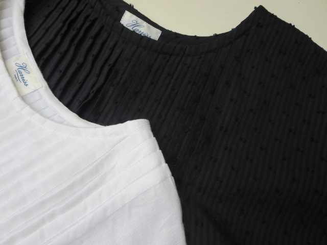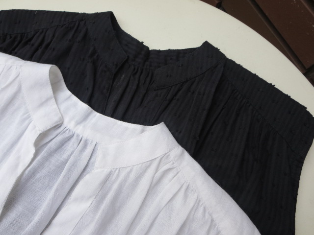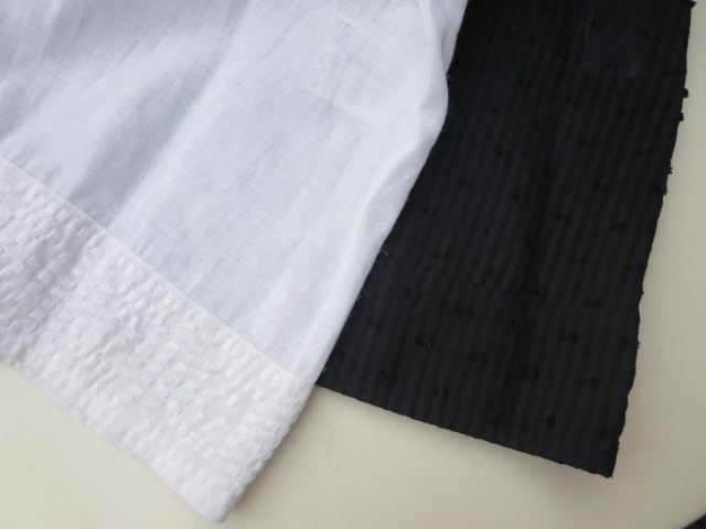 ブラックは、ストライプ地にドット柄の刺繍が施されています。ホワイトの方は、コットン・リネン素材で裾に可愛らしい刺繍入り!