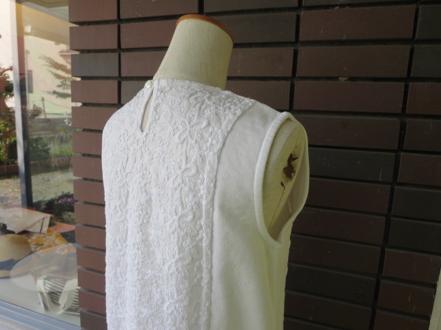 刺繍シリーズの最後は、ワンピース!前後身頃は、刺繍があしらわれ、両脇部分が、ジャージィ素材。勿論、着易さもバッチリです!ボトムにレギンスなど合わせても◎。涼しげな雰囲気で着て頂けます。
