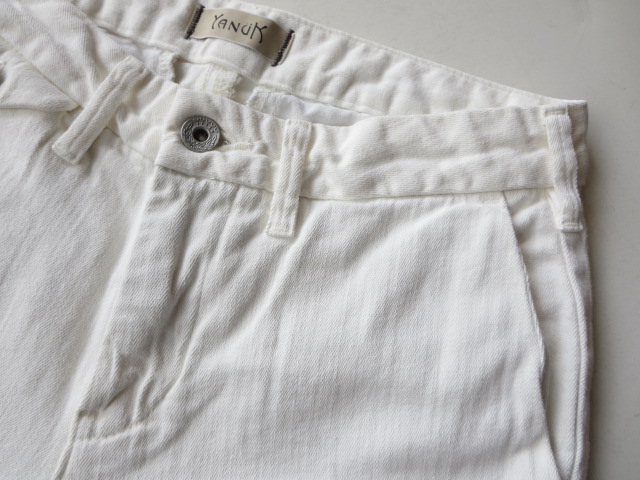 "YANUK"で、今や不動の人気を誇るCHINOシリーズ。今回は、レーヨン・リネン混のサラッと柔らかい素材感で、夏にとても穿き易い1本となっています。シルエットは、程よくゆとりのあるスッキリとしたテーパード。デニムより、キレイ目な雰囲気で穿くことが出来ます。一年通して、人気のホワイト。お持ちでない方、是非おススメですよ!