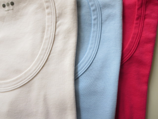 こちらもUネックのリブタンクトップ。バランスの良い着丈で、こちらも根強い人気を誇るアイテム。重ね着には、とっても重宝する1枚。何枚あってもいいですよね。