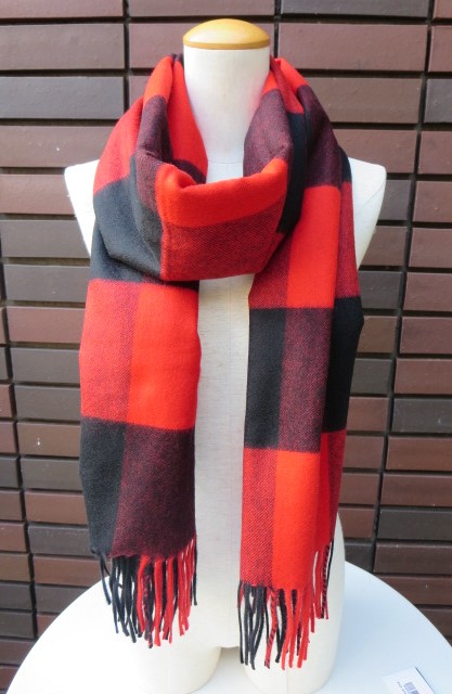 ( Black/Red Block Check )・・・ブラック×レッドのスッキリとした配色のブロックチェック柄です。カジュアルな印象ですが、しっとりとしたカシミア素材で大人っぽく使って頂けます。