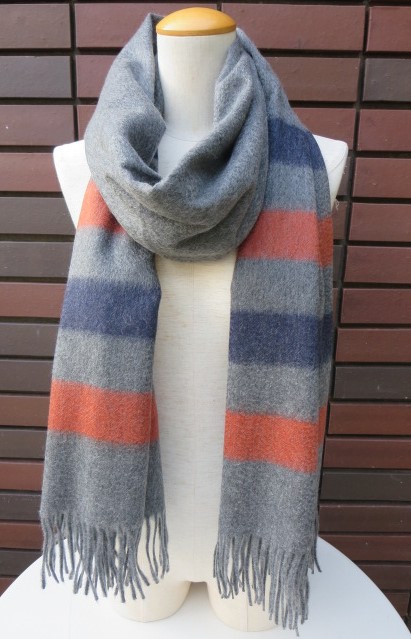 ( Grey with Horizontal )・・・グレーベースにネイビー、オレンジのボーダー柄。首に巻いた時に丁度良い感じで、ボーダーの配色の色がアクセントになります。