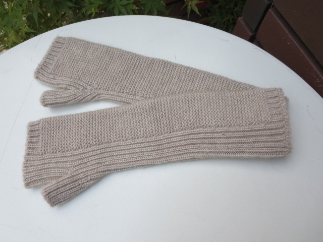 昨年、お客様よりご要望があったカシミア100%の指なしニットグローブ。手首まですっぽりと隠せる長さで防寒対策にも、◎。指ナシなので、手先が使えて便利ですよ。編地も可愛いです。