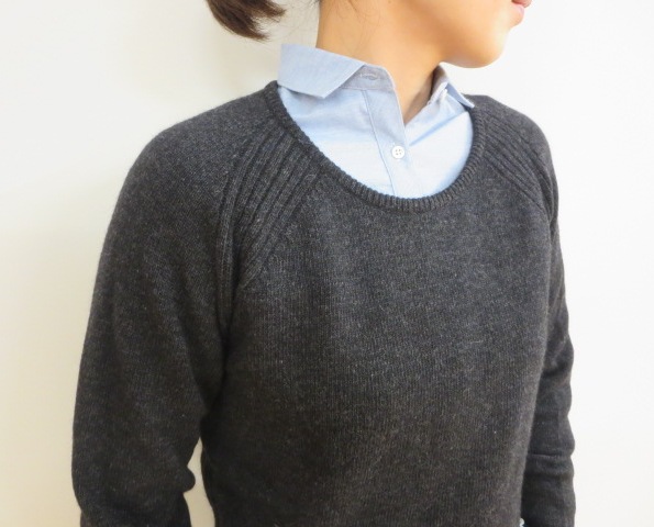 ラグランのクルーネックのシンプルなニットは、何枚持っていても着まわしの効く冬の強い味方。首元がすっきりとしているので、インナーにシャツを合わせて上品に仕上げます。着丈もどんなボトムをもってきても、バランスの取れる優秀ニットです。