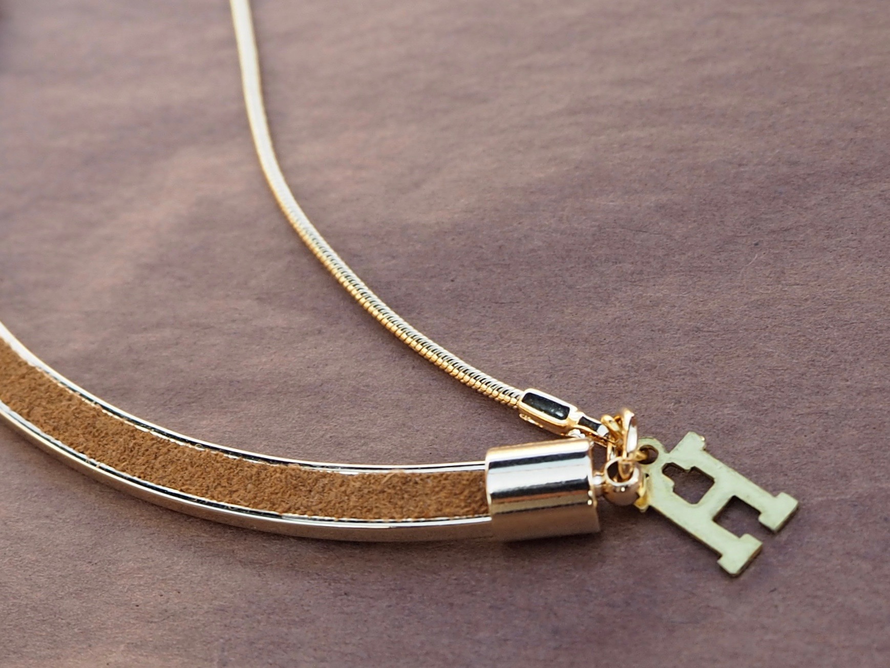アーチ型のヘッド部はスエードのような質感の生地がはめ込まれていて、ゴールドのお色目を柔らかく見せてくれます。 Harriss/ハリスの『H』がアクセントになって。