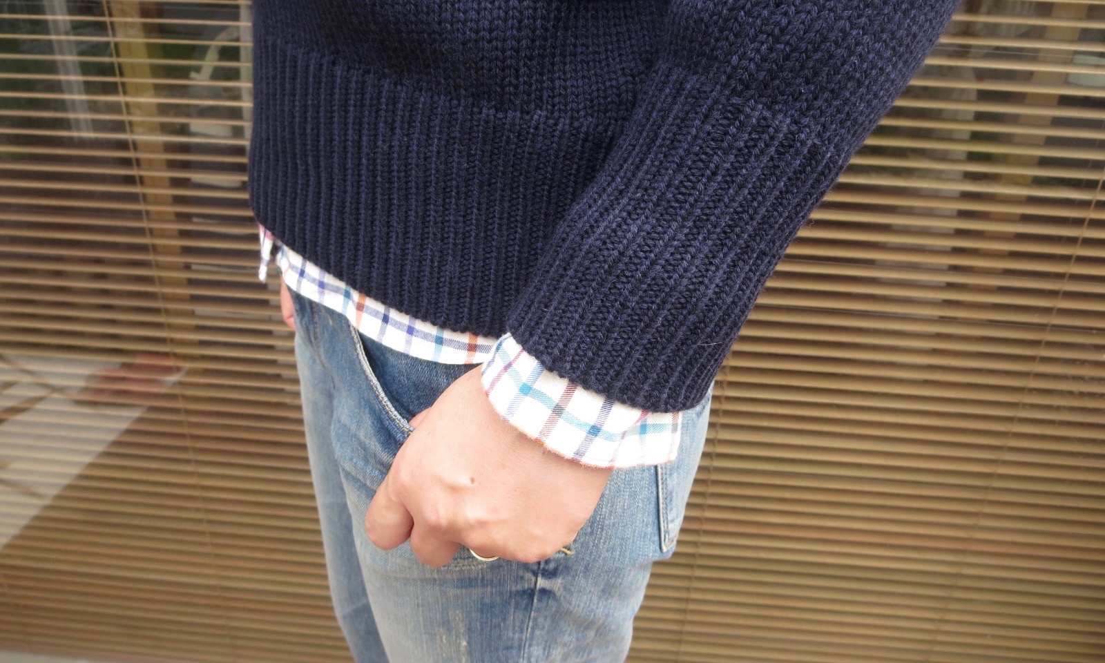 ニットの柔らかさを生かしながらも無駄なゆとりがなく、日本人にぴったりなコンパクトなフィッティングはさすがです。