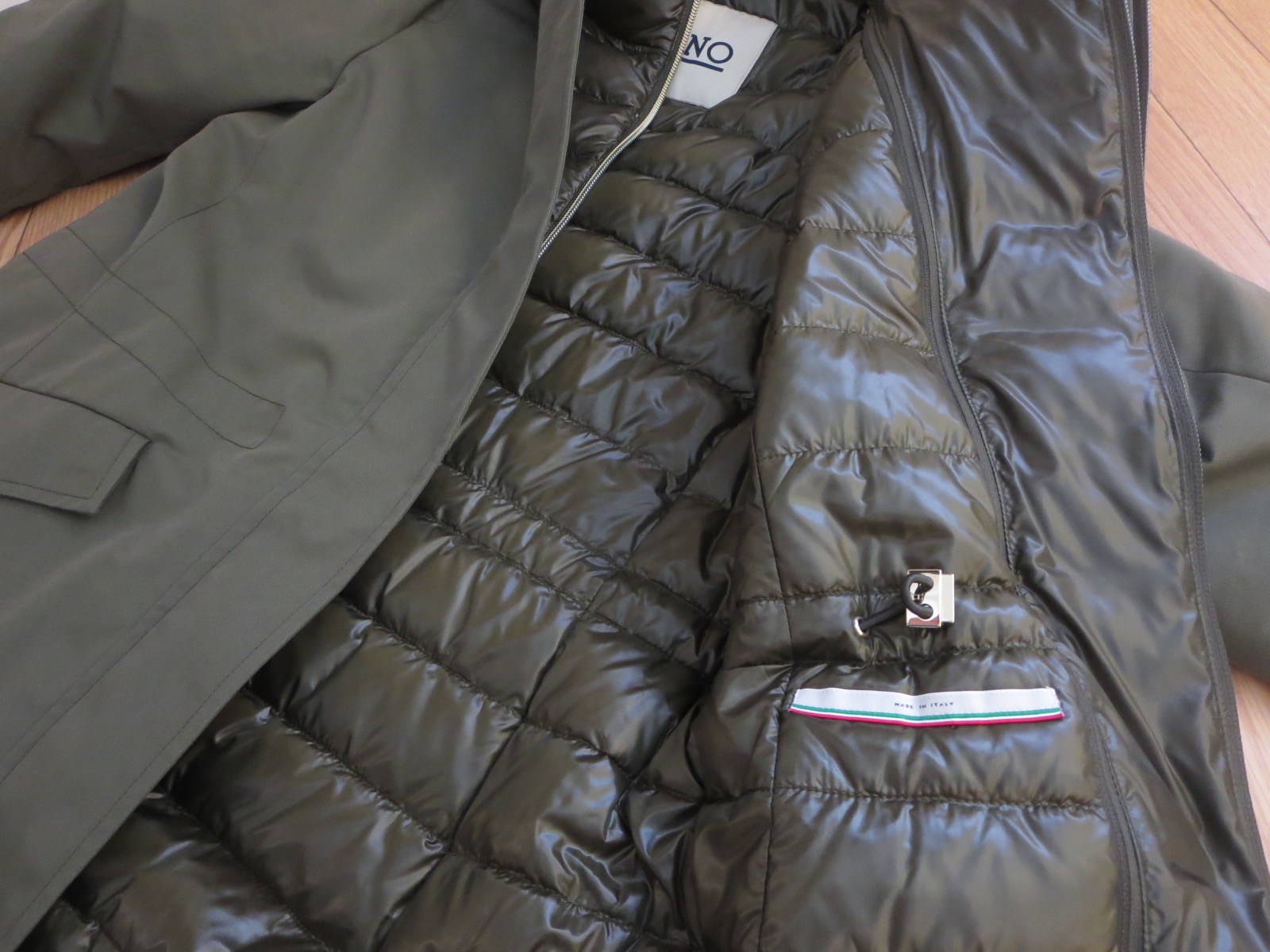 MATERIAL:表地:コットン66%、ナイロン(はっ水ー水をはじきやすい)34% 中綿:ダウン80%、フェザー20% 襟部分・前立て部分・別布部分:ナイロン100% 裏地:ナイロン100%
