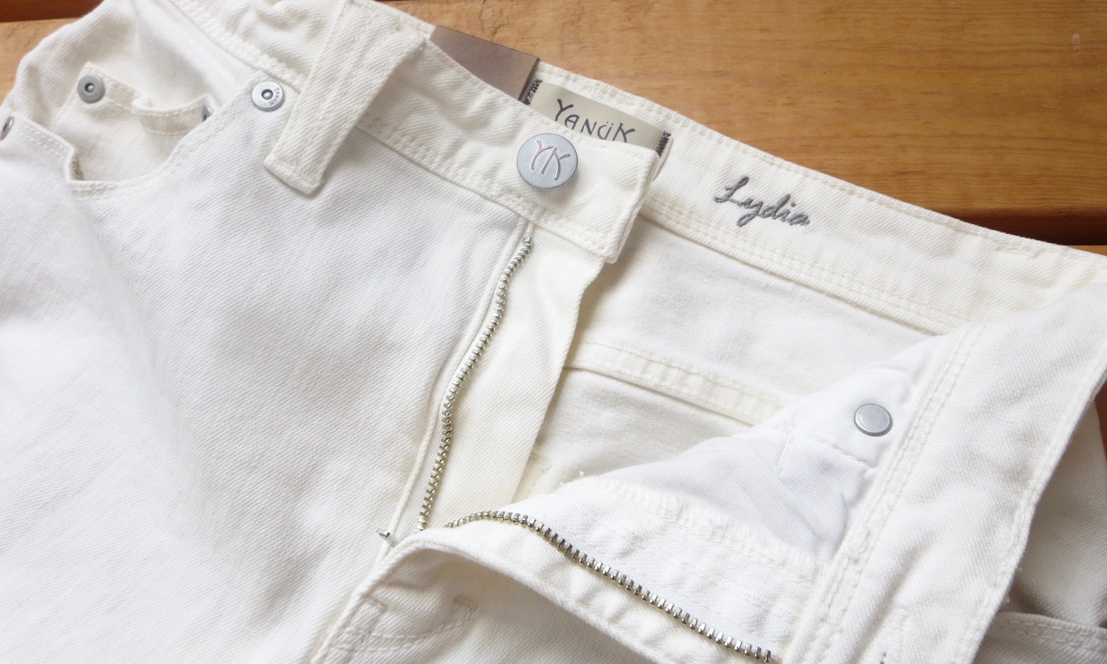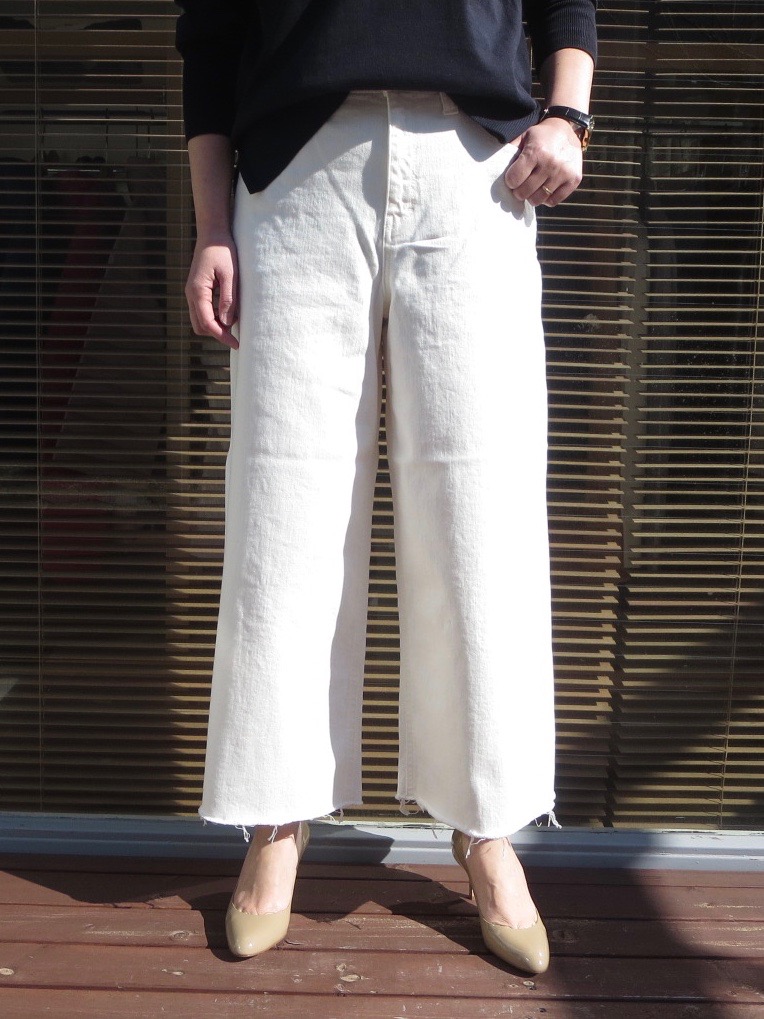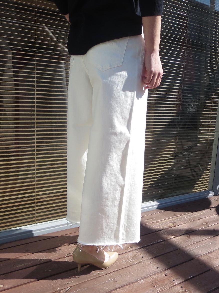カシェートでは初めて展開する「LYDIA」というモデル、前回はインディゴデニムのご紹介でしたが、今回はその色違いのホワイトです。眩しいくらい爽やかな白も、地厚のデニム素材なら安心して穿いていただけます。