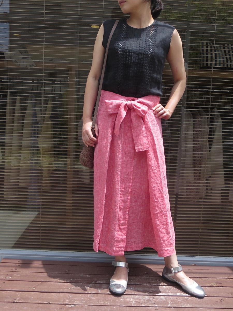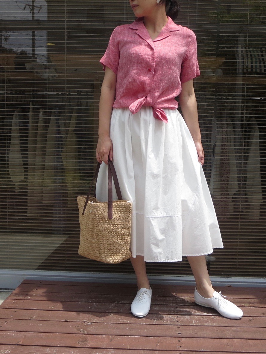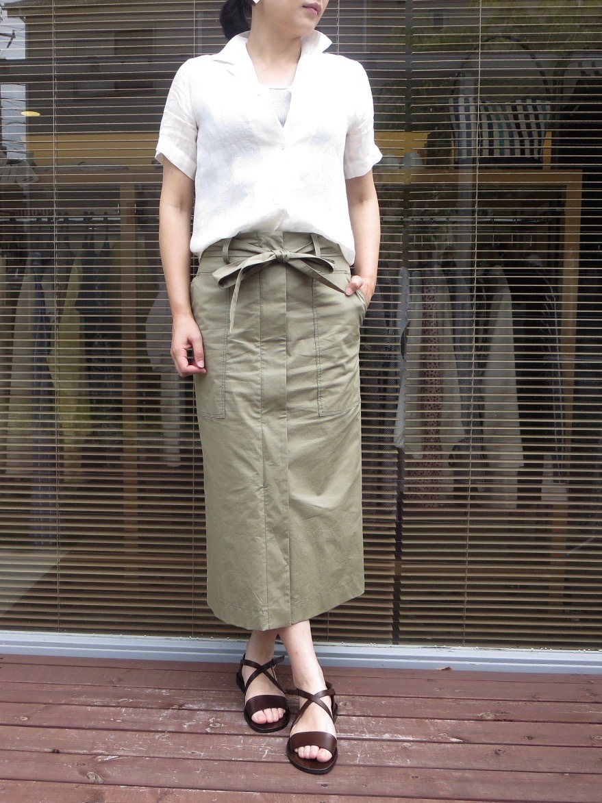 ついにこの地方も梅雨入りしましたね。来週は雨の予報も多く、主婦の方は洗濯物が乾きにくく、しばらく憂鬱ですよね。こじつけになっちゃいますが、今日は洗濯をしても乾きやすい麻のスカートとシャツをご紹介したいと思います。