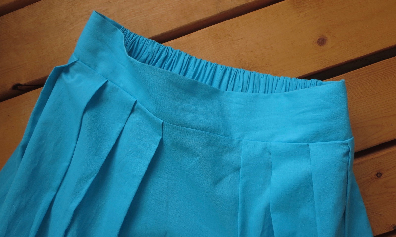 正面は、タックですっきりと、後ろはギャザーでふんわり感を出したメリハリのある一枚です。またウエストはゴム仕様なので、嫌な締め付け感がなくストレスフリーです。