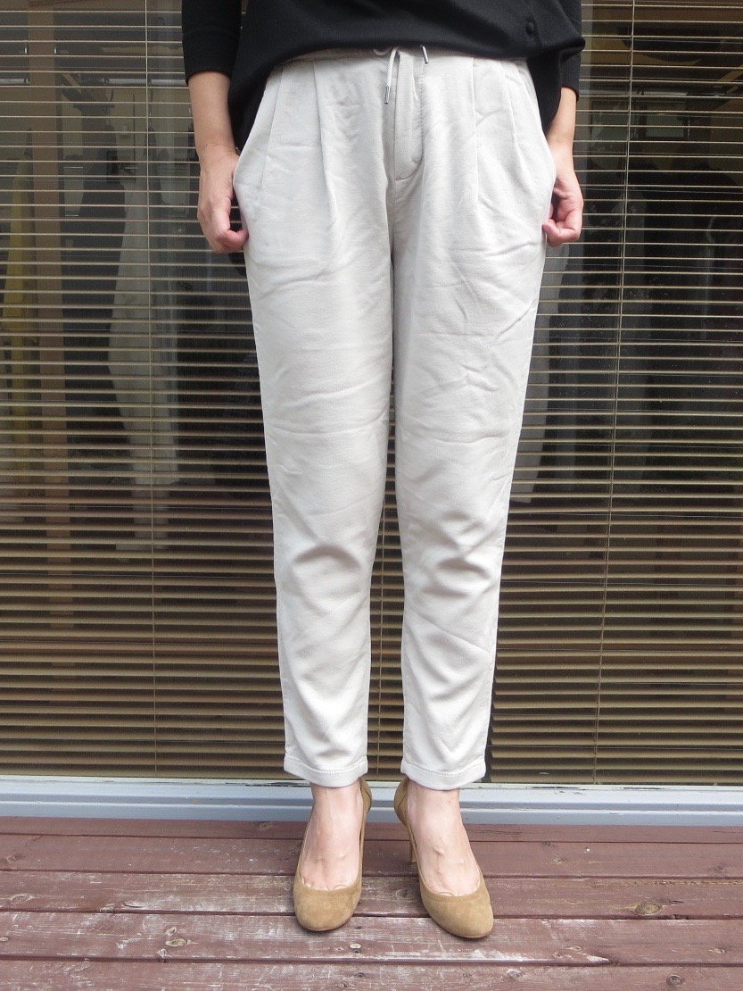 すっきりとしたテーパードながらウエストのゴムとストレッチに効いた生地でストレスフリーの穿き心地です。