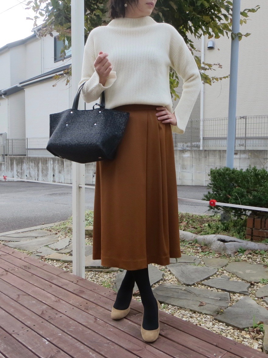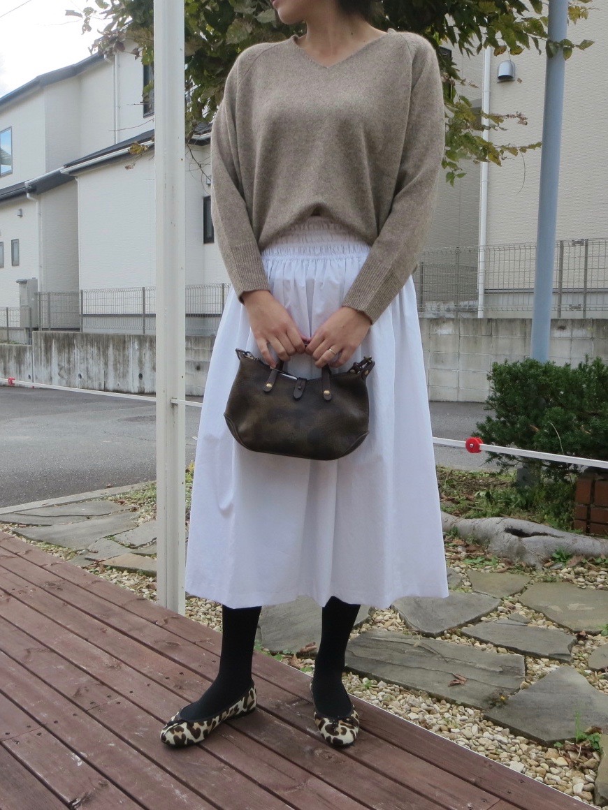 やっぱりニットの白は素敵ですね。色に負けない華やかさと上品さが感じられます。