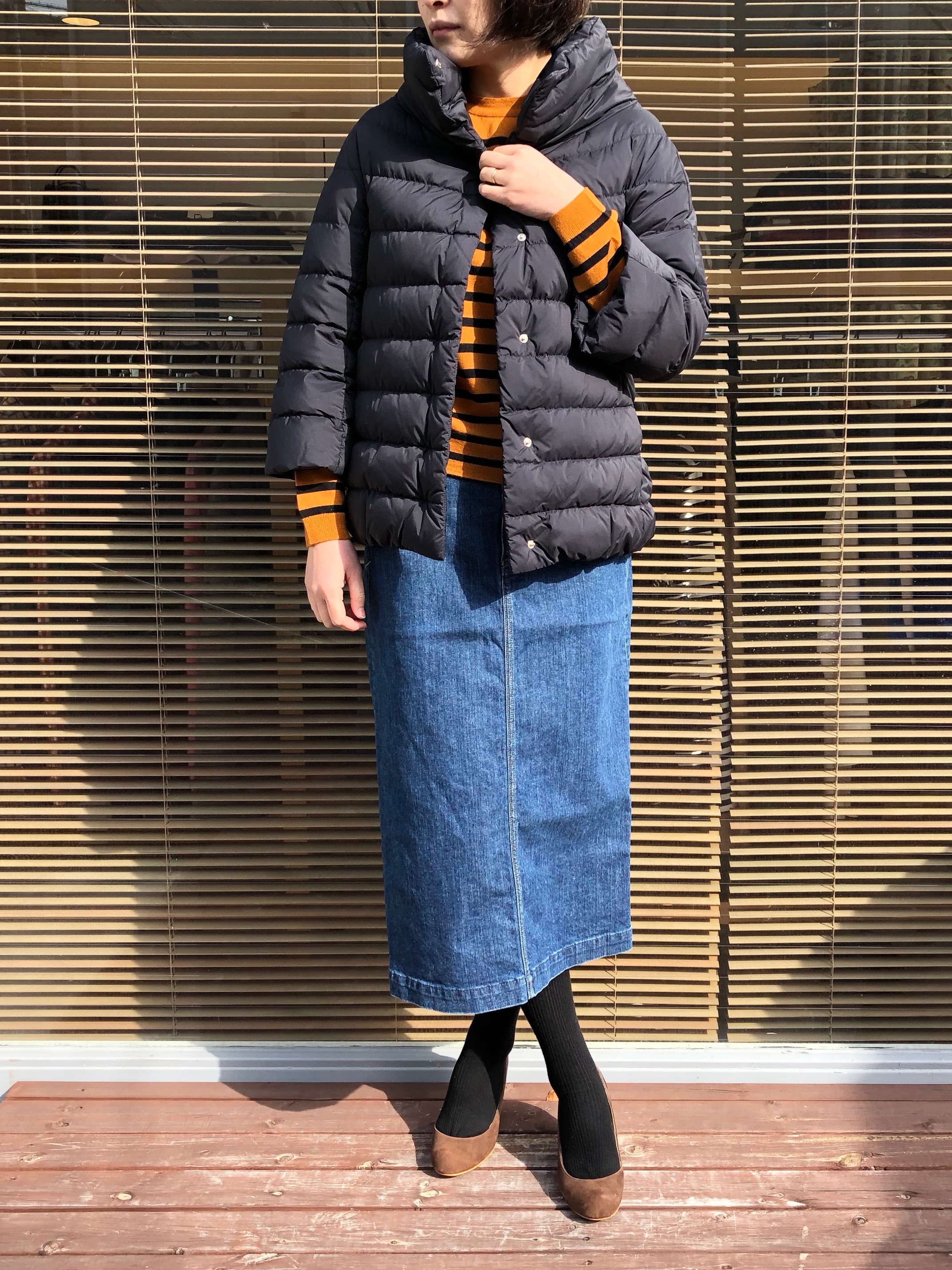 タイツやレギンスを合わせれば、暖かさも確保できますし着まわしも広がります。ボリュームのあるアウターにも負けない存在感で、シーズン関係なく出番が多くなりそうなスカートです。コーディネートで着ている『JOHN SMEDLEY』や『ZANONE』のニットは、只今お求めやすい価格となっていますので、こちらもぜひチェックしてくださいね。