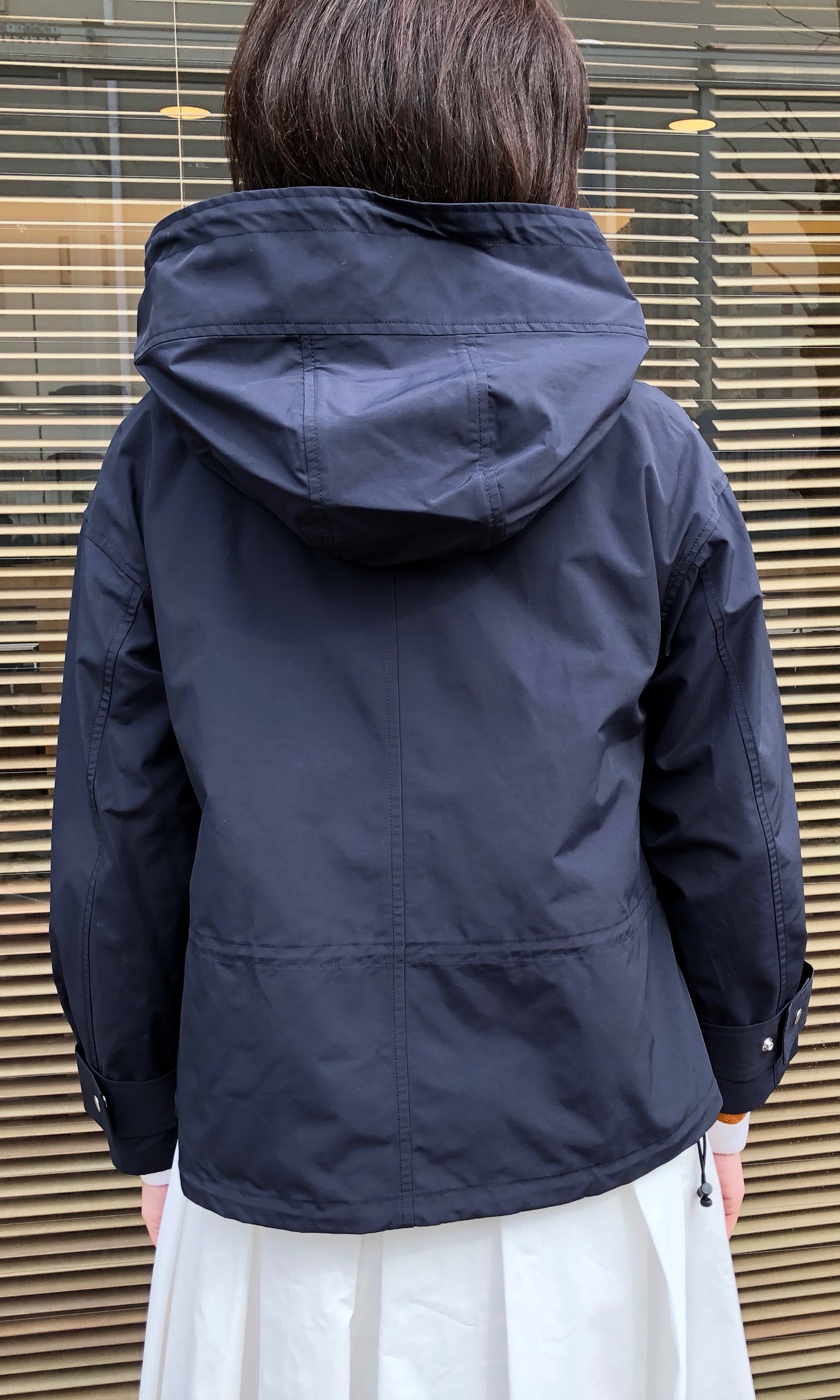 フード、ウエスト、裾の内側にはドローコードが付いているので、スタイリングによってお楽しみください。