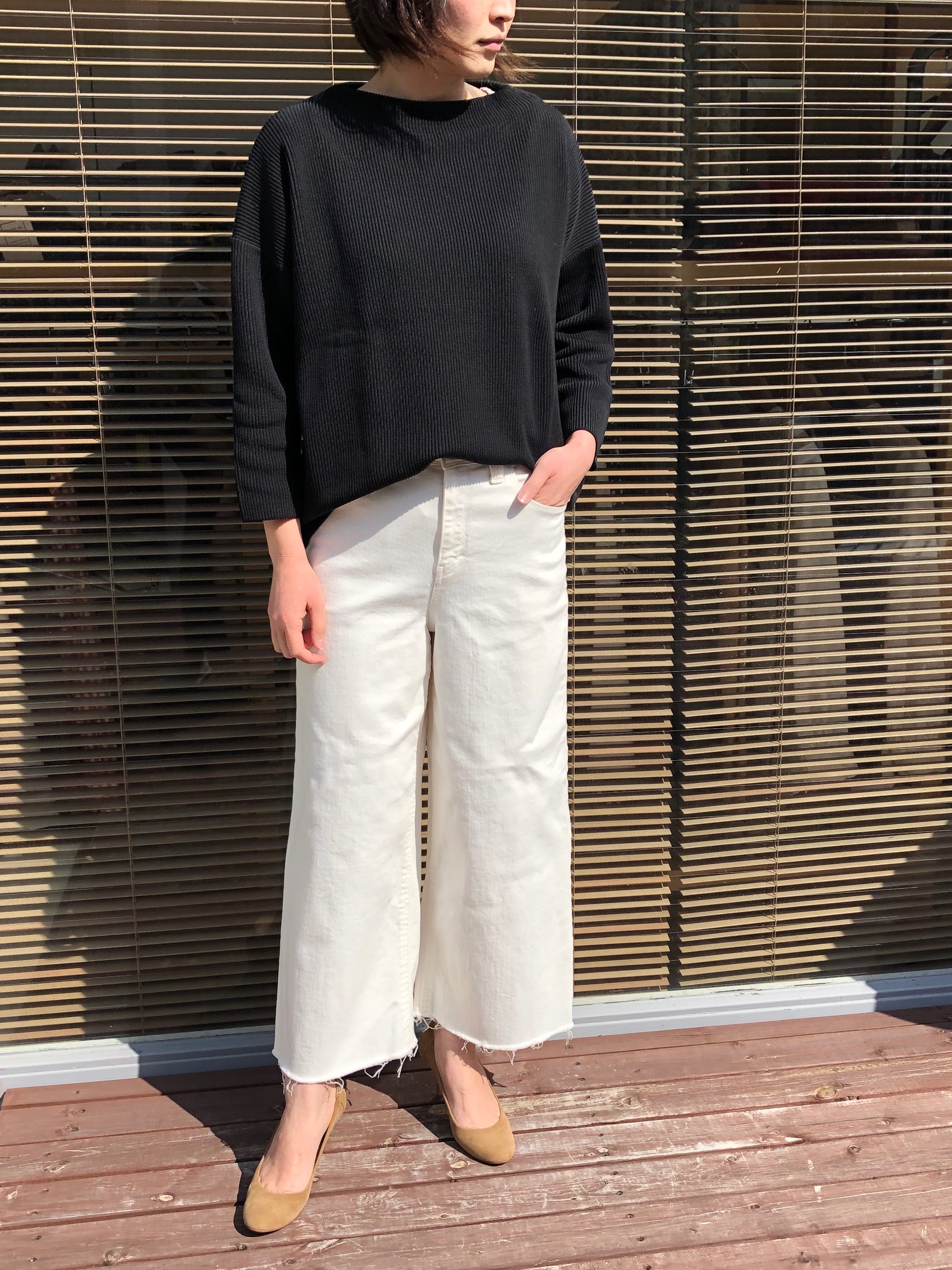 また、今回のコーディネートで使用した『YANUK』の白のワイドパンツ、「LYDIA」もこの春再入荷しました。