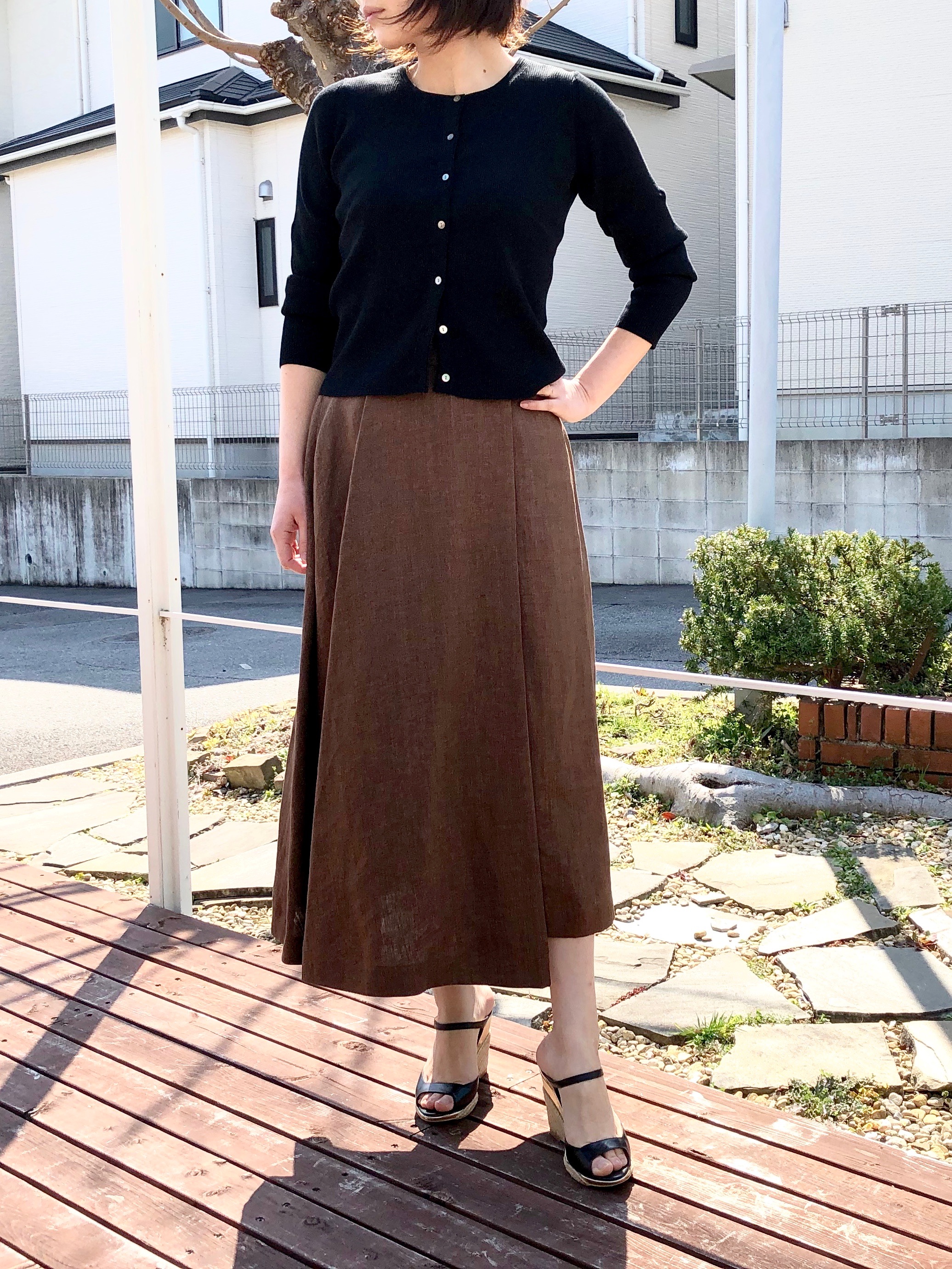 昨年も人気で全国からお問い合わせの多かったラップスカートが今年も登場です!リネン素材でカジュアルな要素がありながらも、美しいシルエットで上品さも兼ね備えているので、気負いなく穿いていただけるスカートになっています。