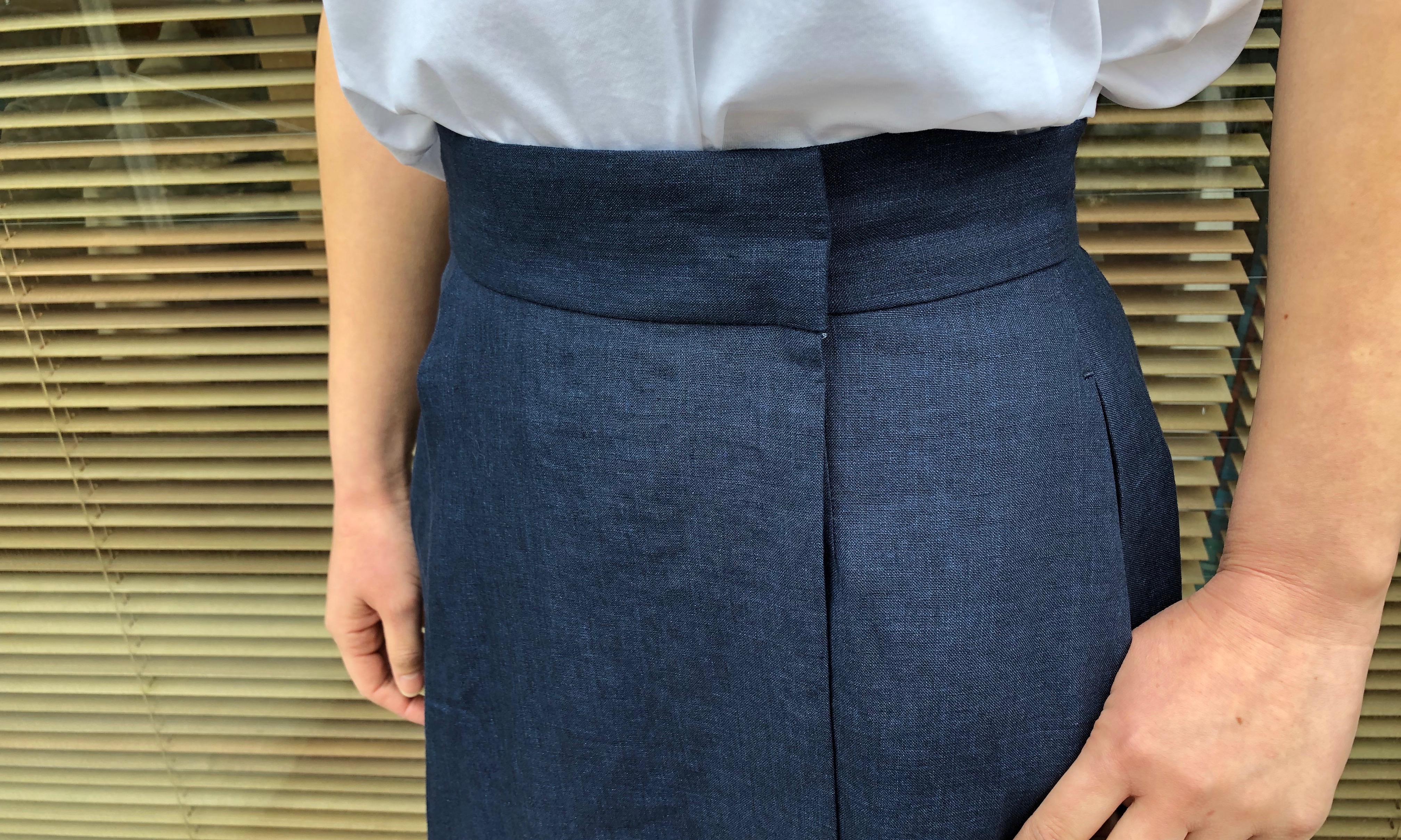 一見するとフレアスカートのようですが、前のセンターにだけボックスプリーツが施されています。