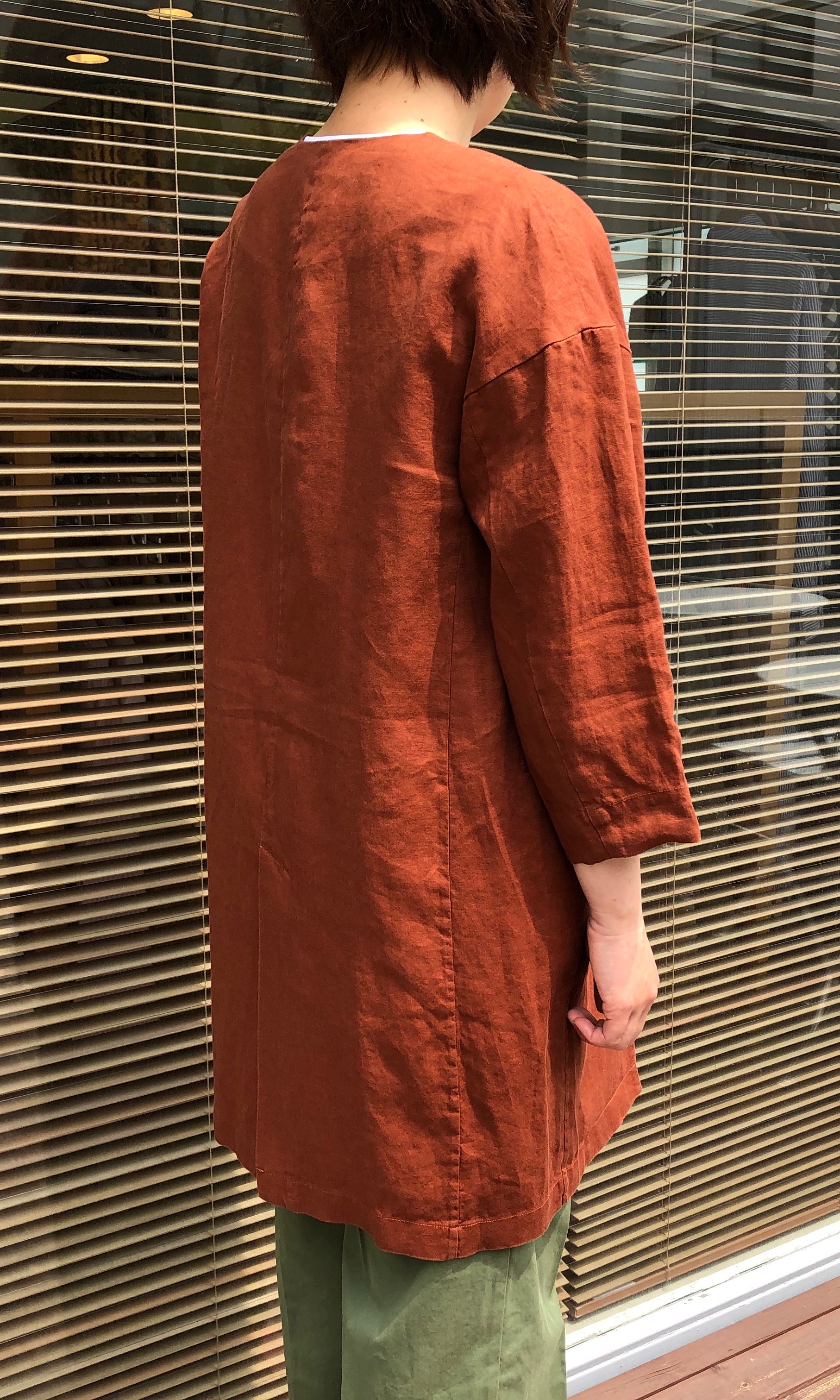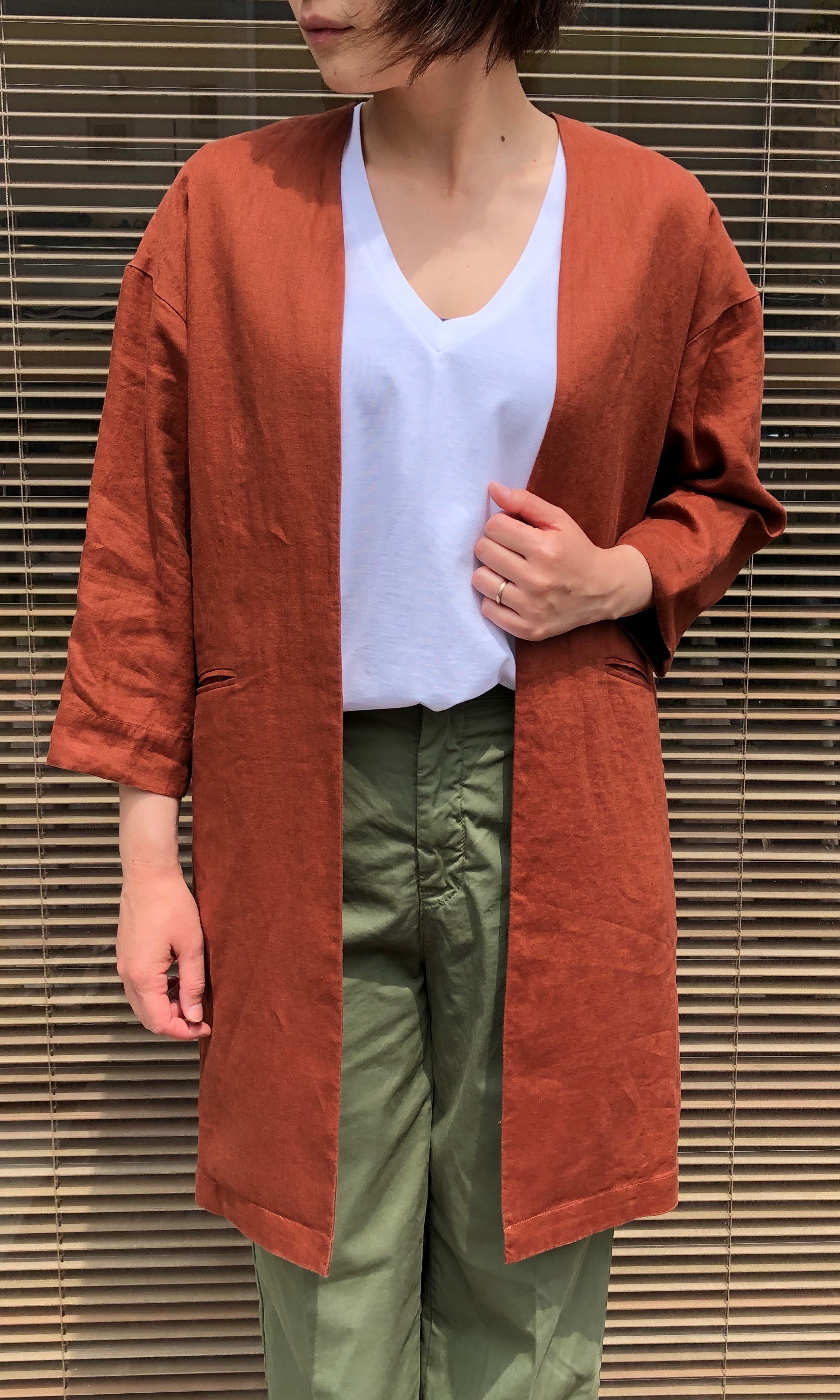 生成りは、麻の素材感をより引き出してくれるので、より涼しげですね。これからの季節、カーディガン感覚で軽やかに羽織れるベーシックな一枚です。