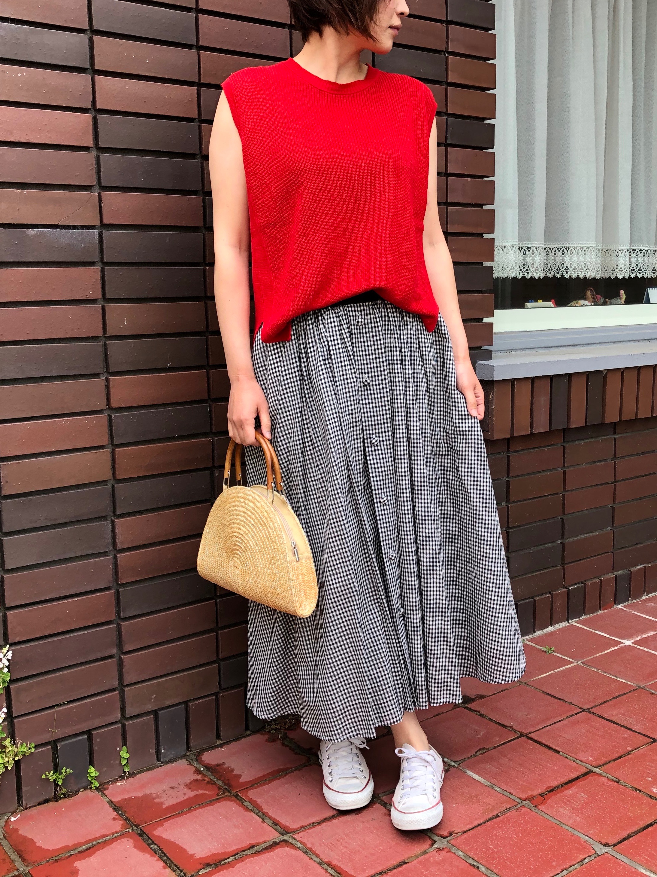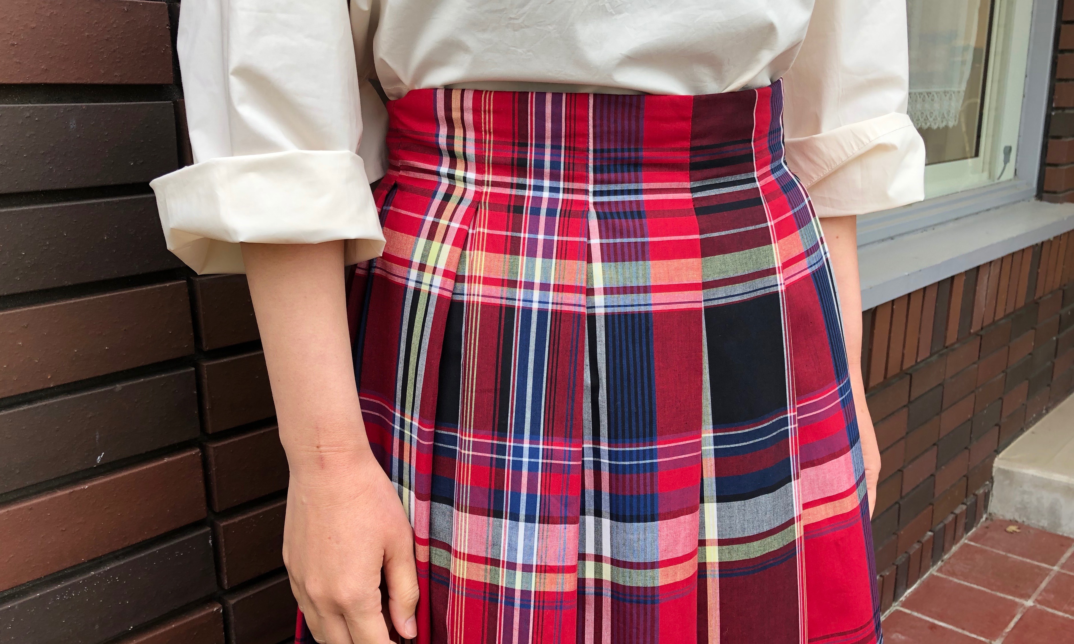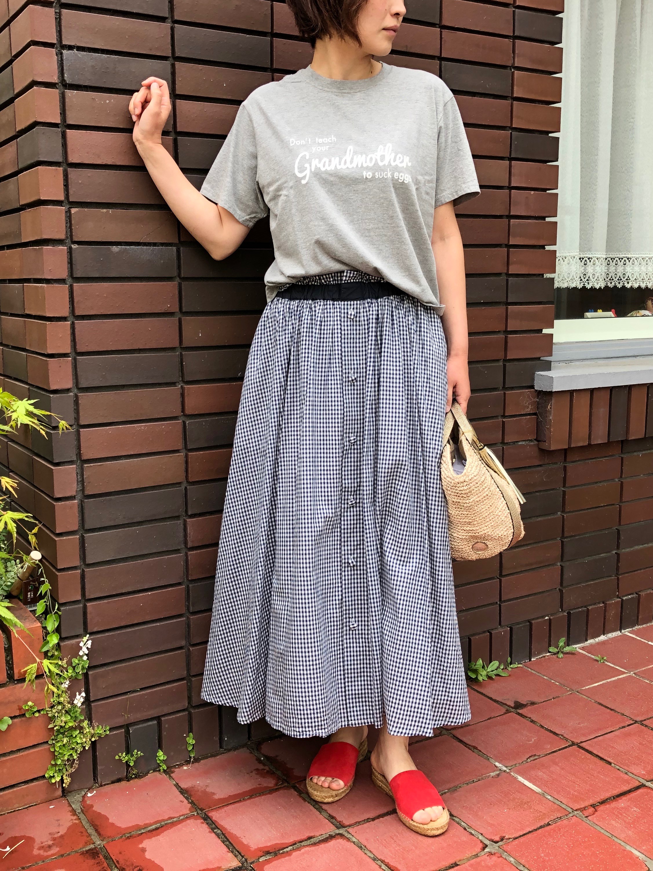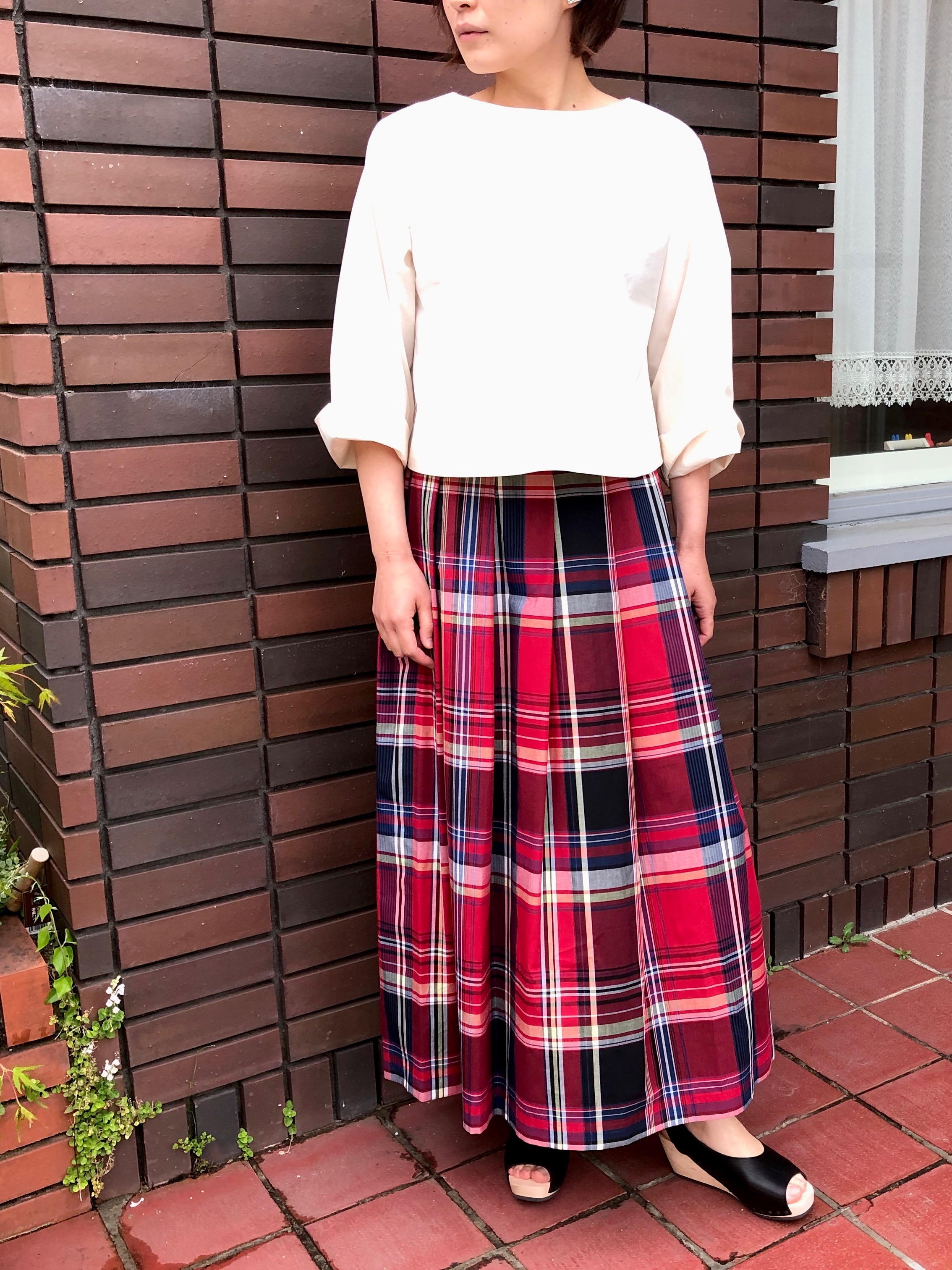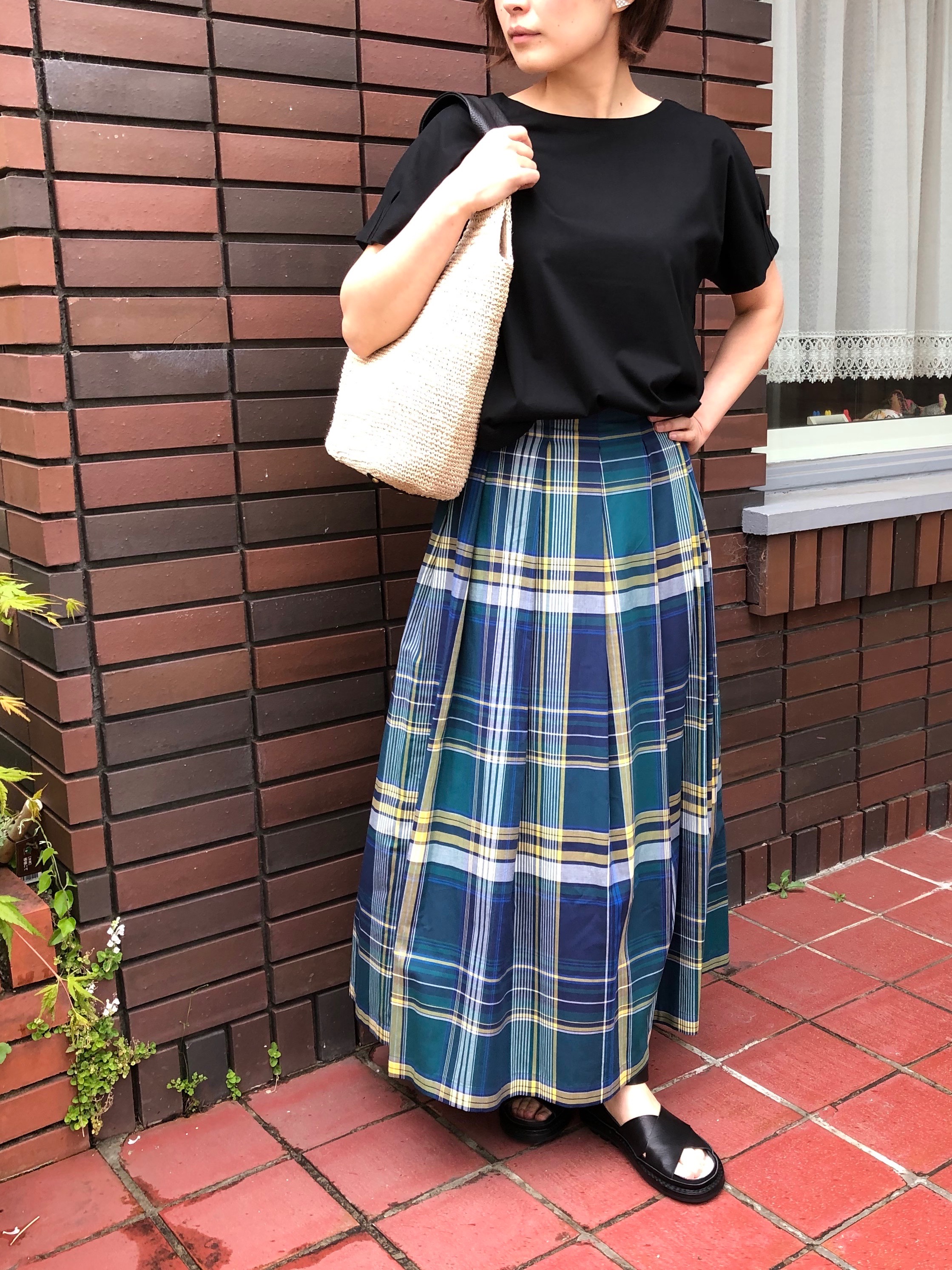 大きなチェックが印象的で、夏らしいマドラスチェックスカートは、穿くだけでコーディネートが決まります。