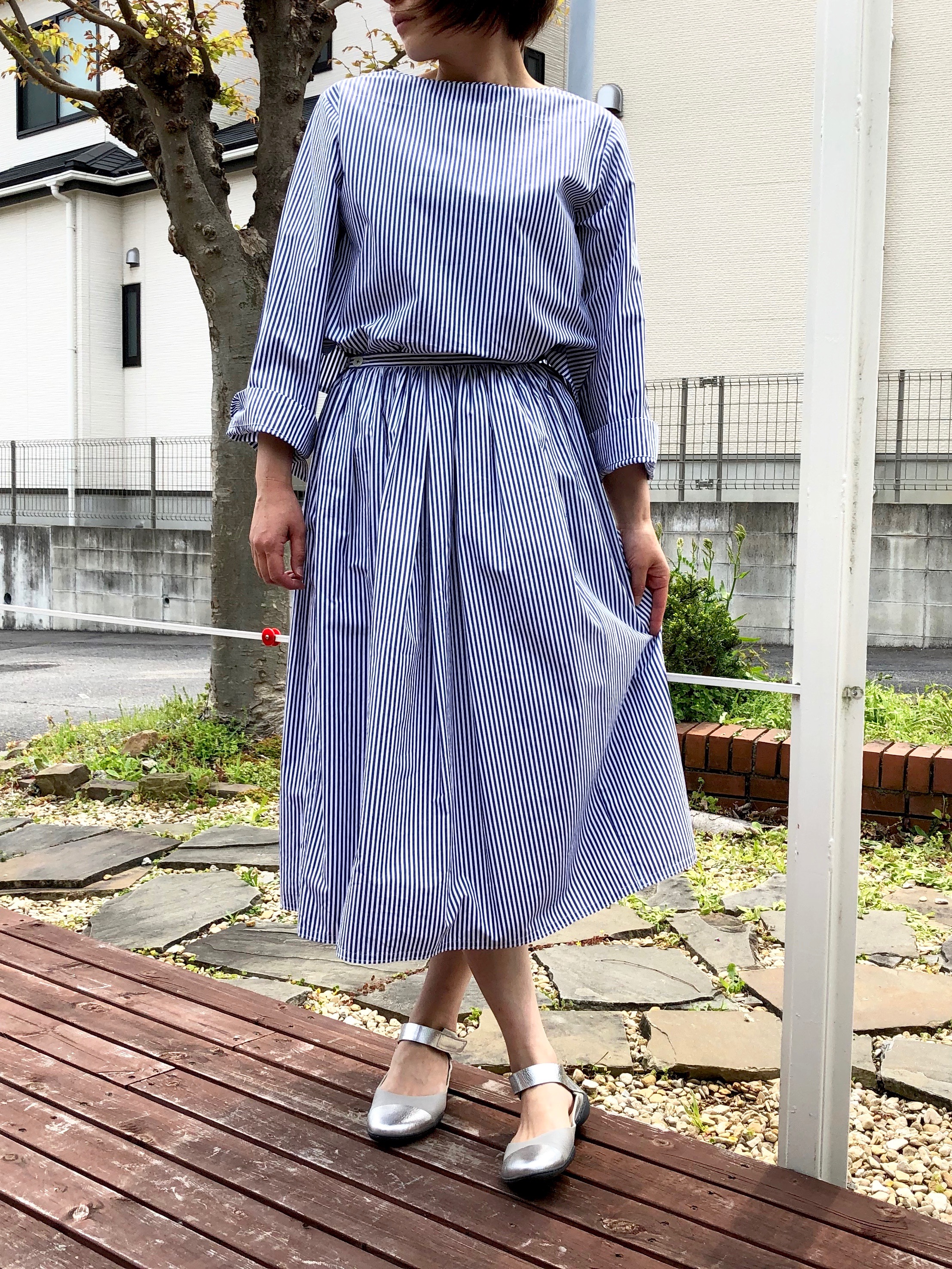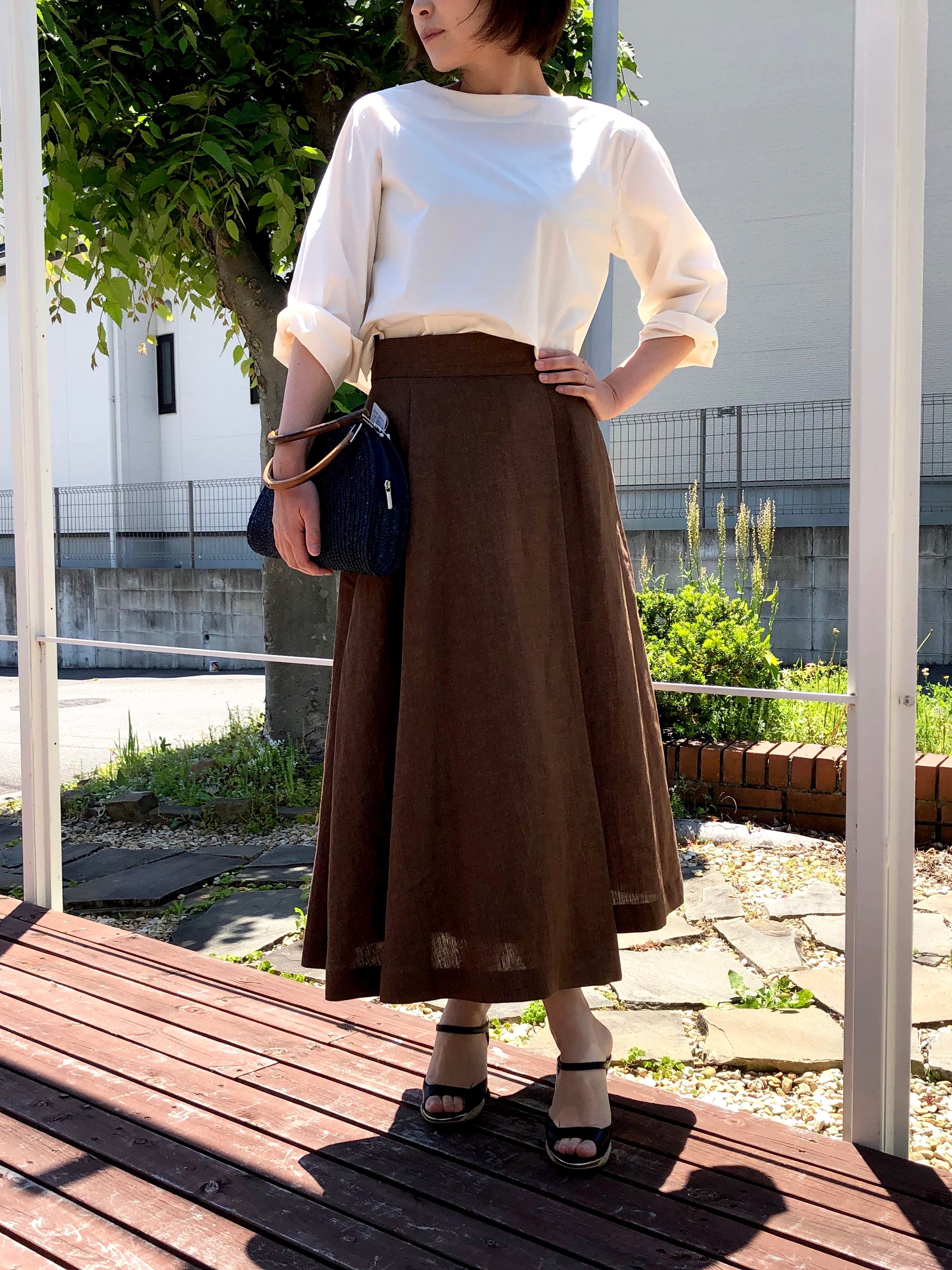 トップスのブラウスとセットアップにすれば、ワンピースっぽく着ていただくこともできます。
