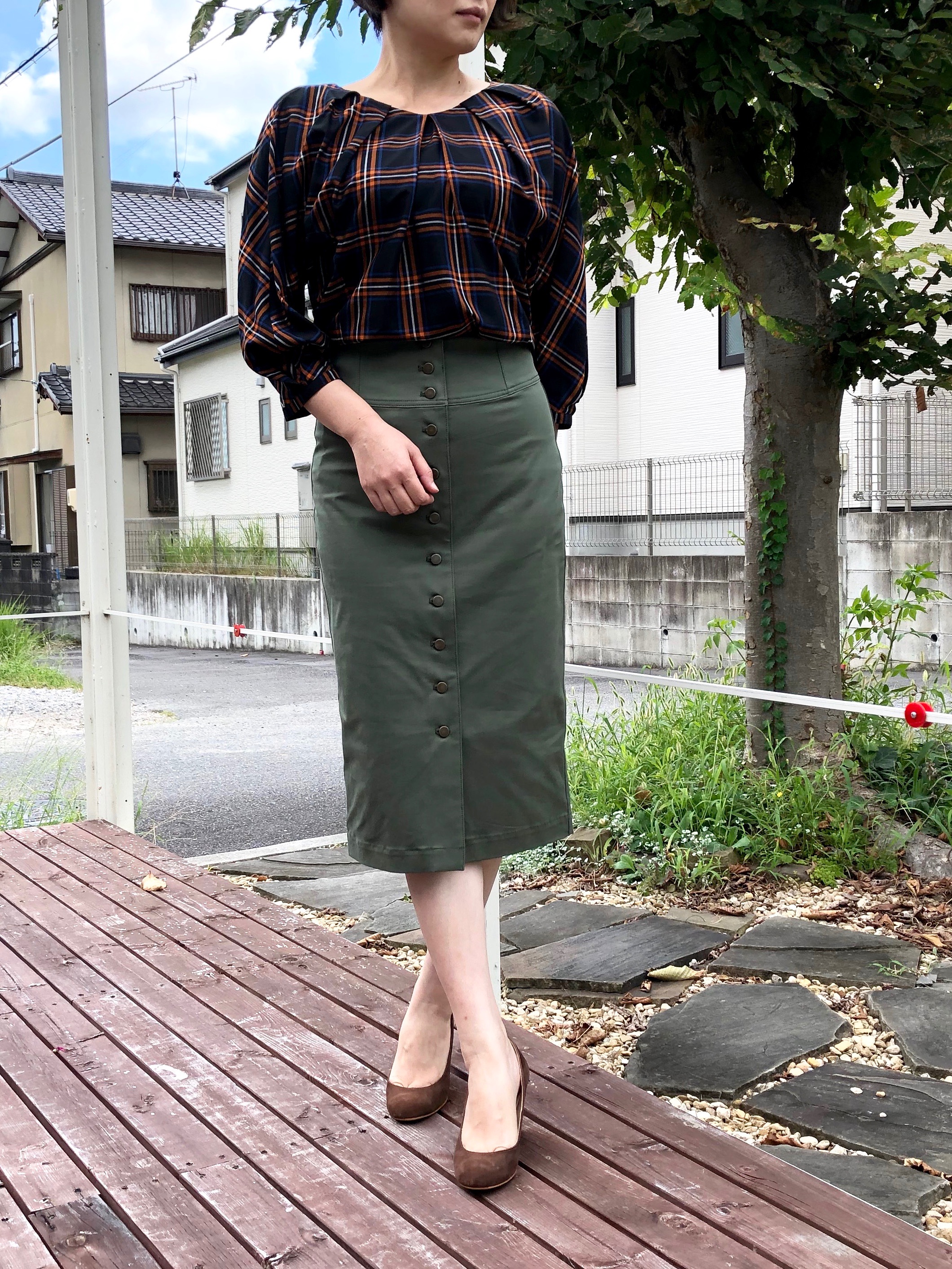 実は、色違いのブラウスは、スカートをご紹介した時にコーディネートに使用していました。改めてご覧ください。