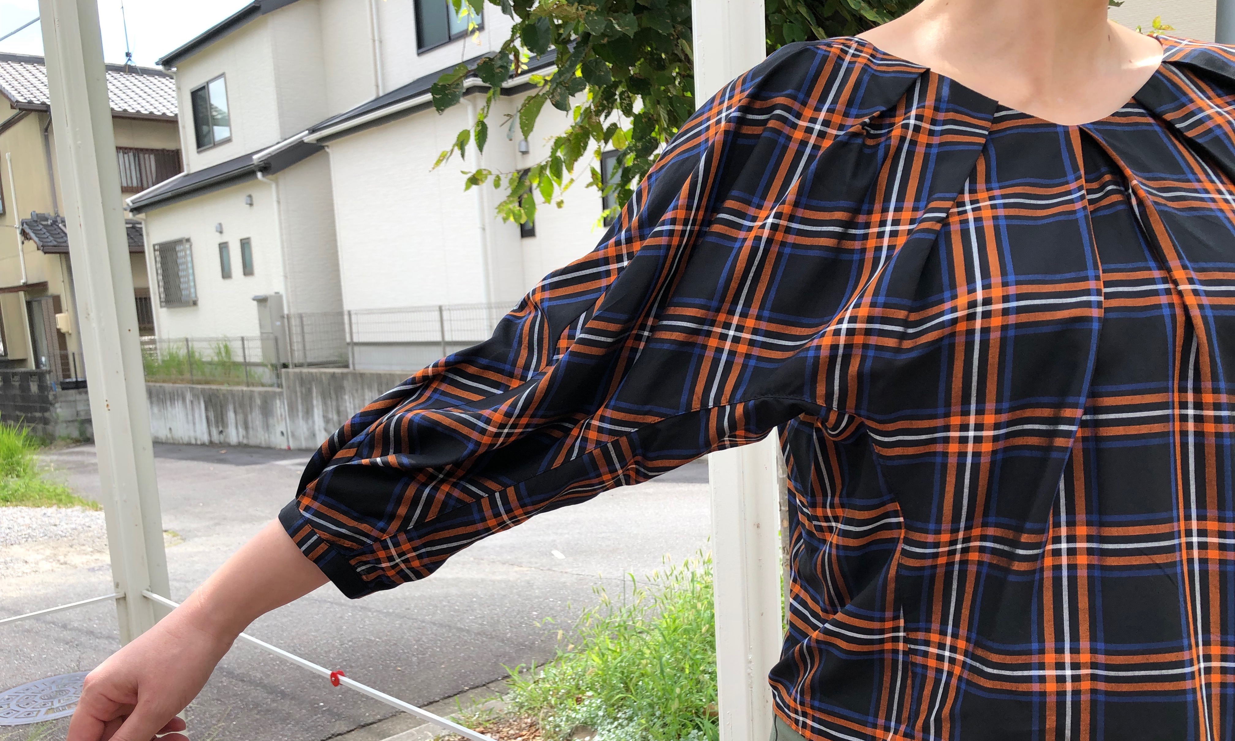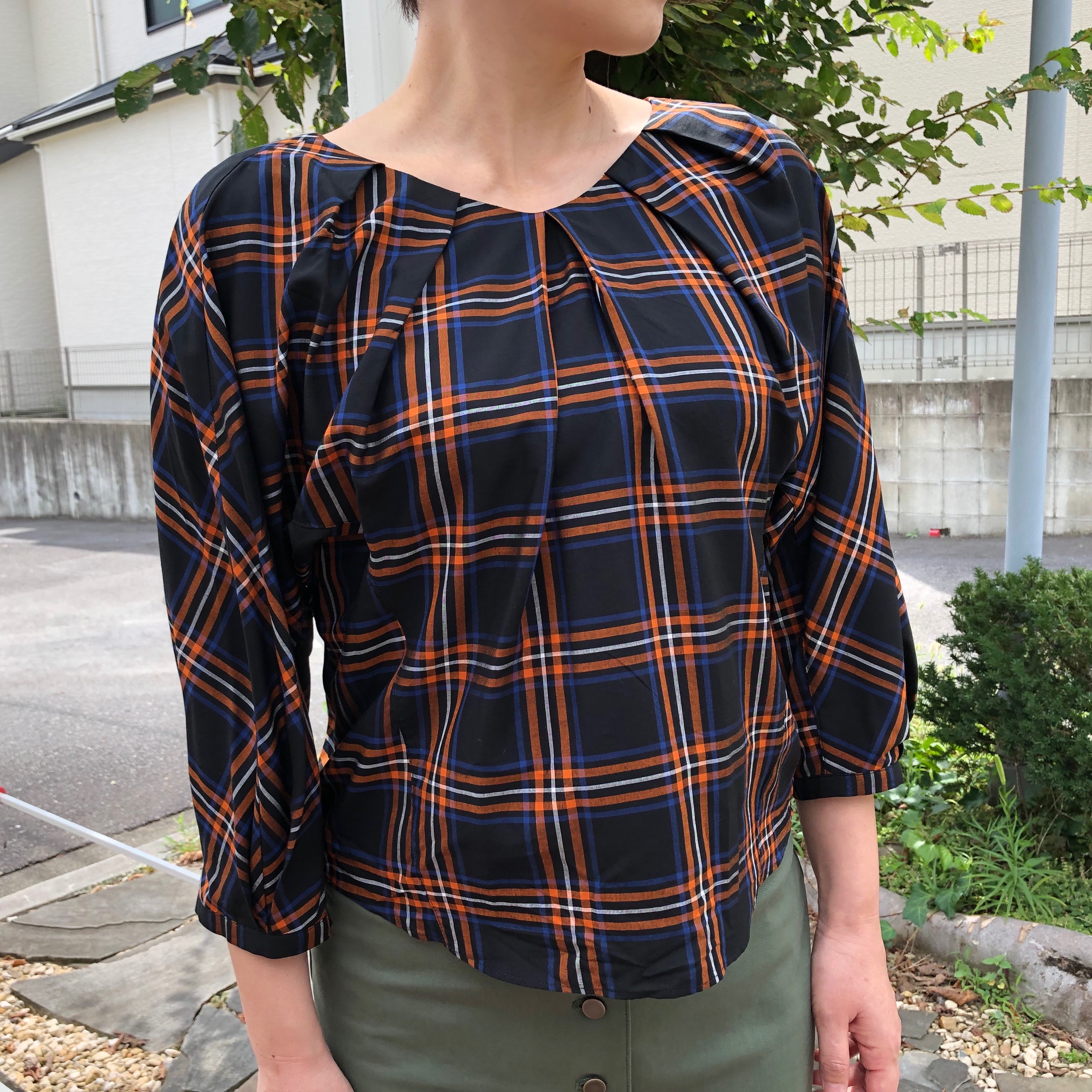 まだ暑いこの時期、すぐにでも着ていただけるプルオーバーブラウスです。チェックの色合いが、秋らしい雰囲気たっぷりです。