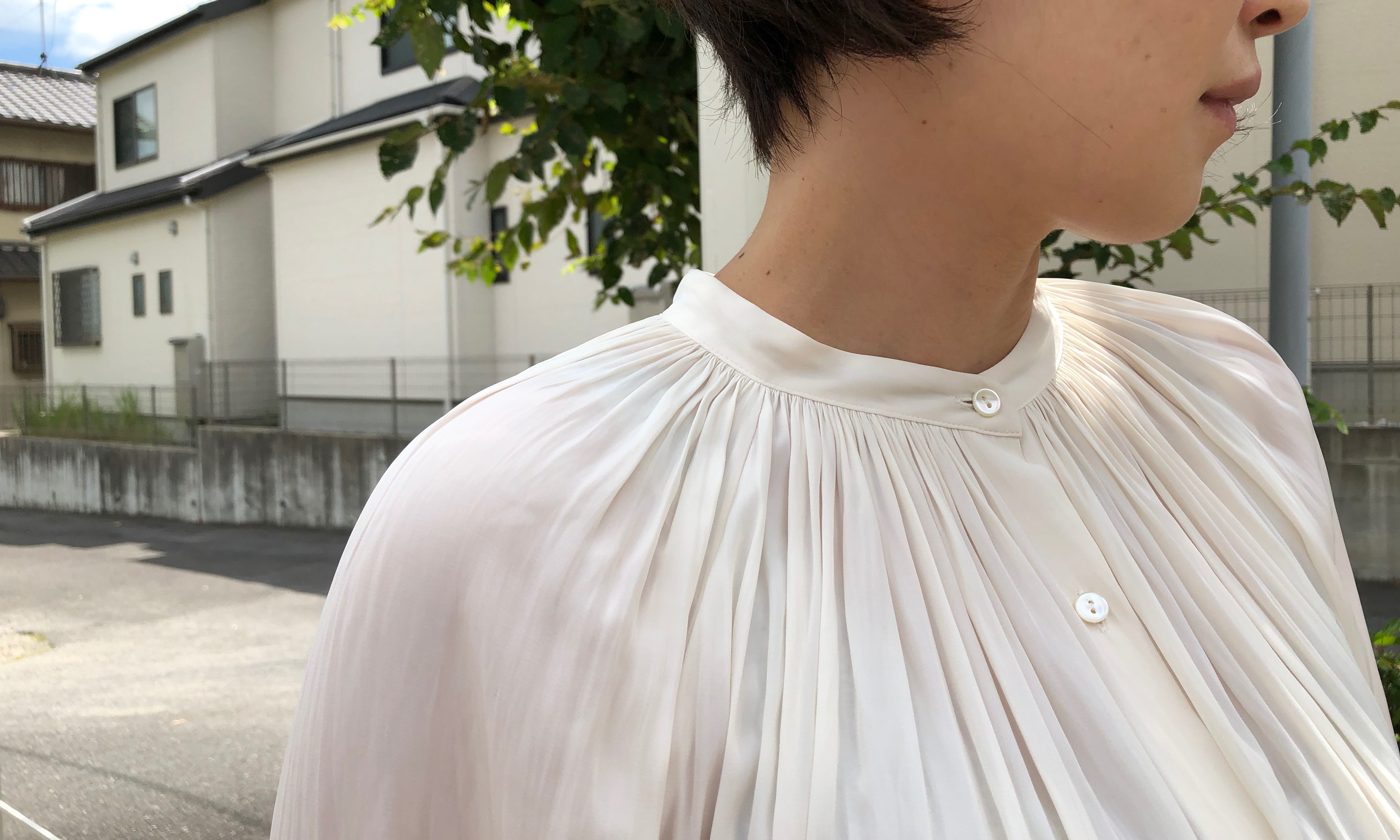 どこかよそ行きの雰囲気がありますが、ぜひ普段にさりげなく着ていただきたいブラウスです。