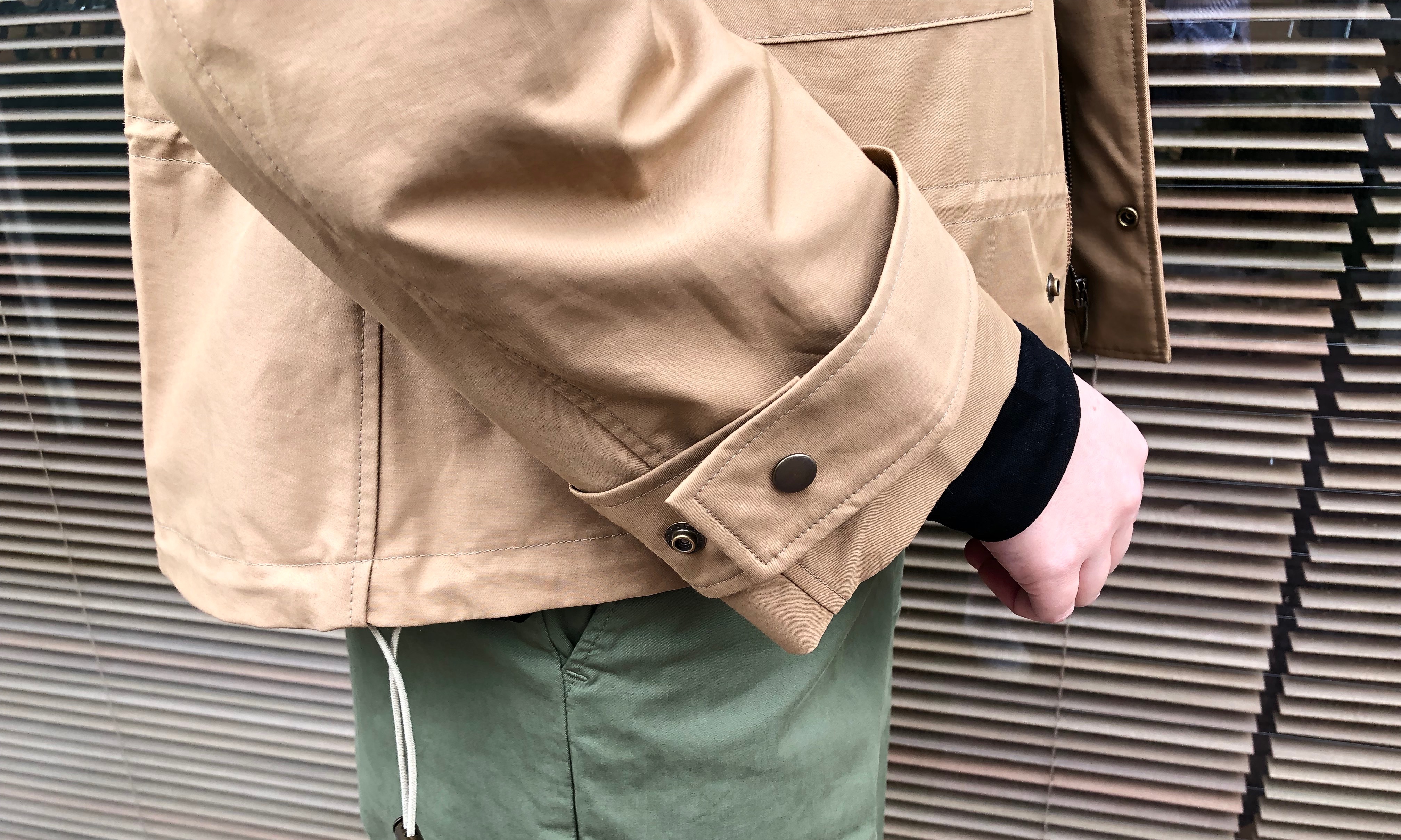 胸にあしらったアウトポケットやコンパクトに見える作りで、かっちりとしたアウターではなく、さらっと軽く羽織れるイージーな印象ですので、季節の変わり目には最適です。また、高密度に織り上げた薄手のダンプ生地で、風を通しにくく、多少の水濡れなら弾いてくれます。