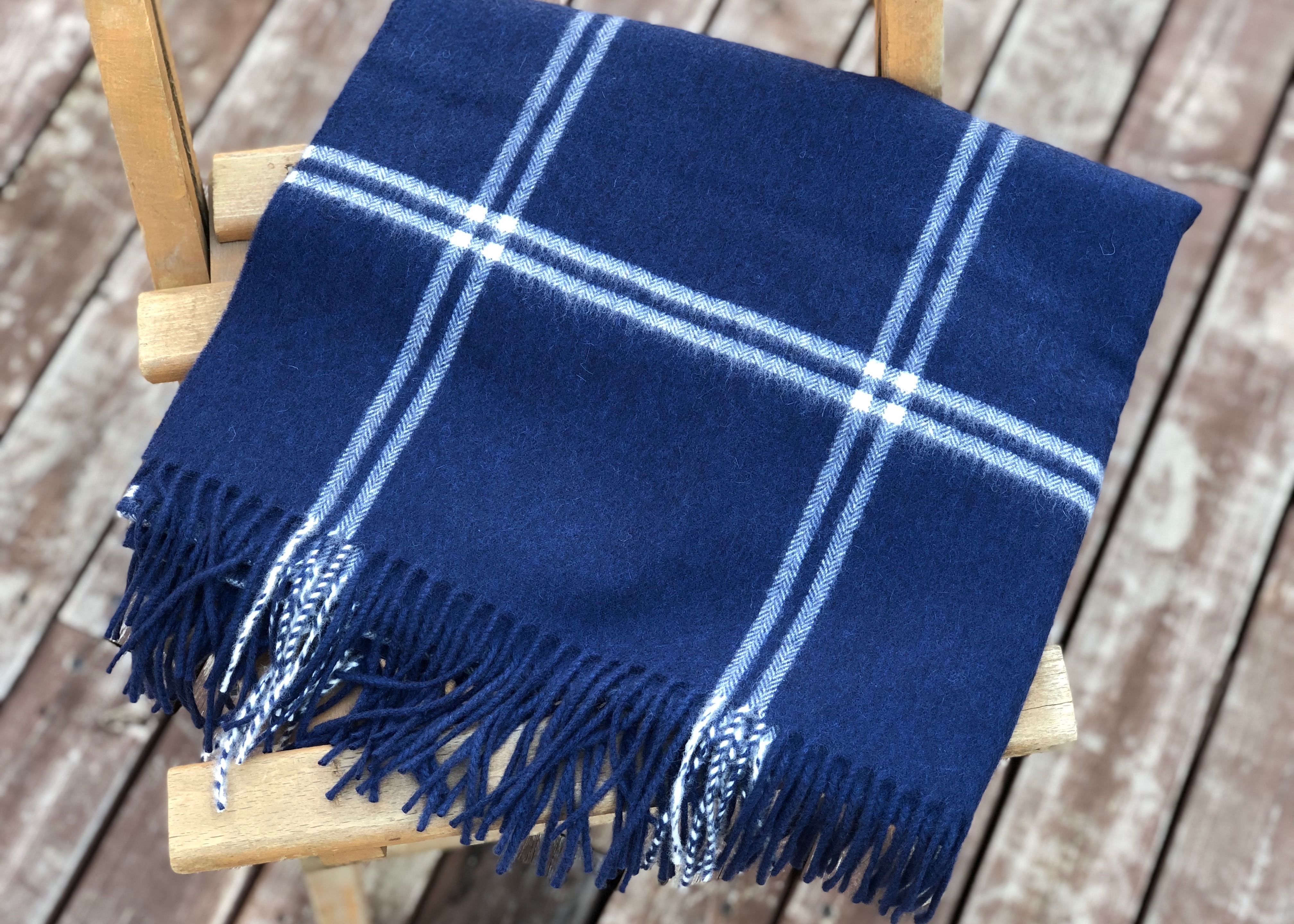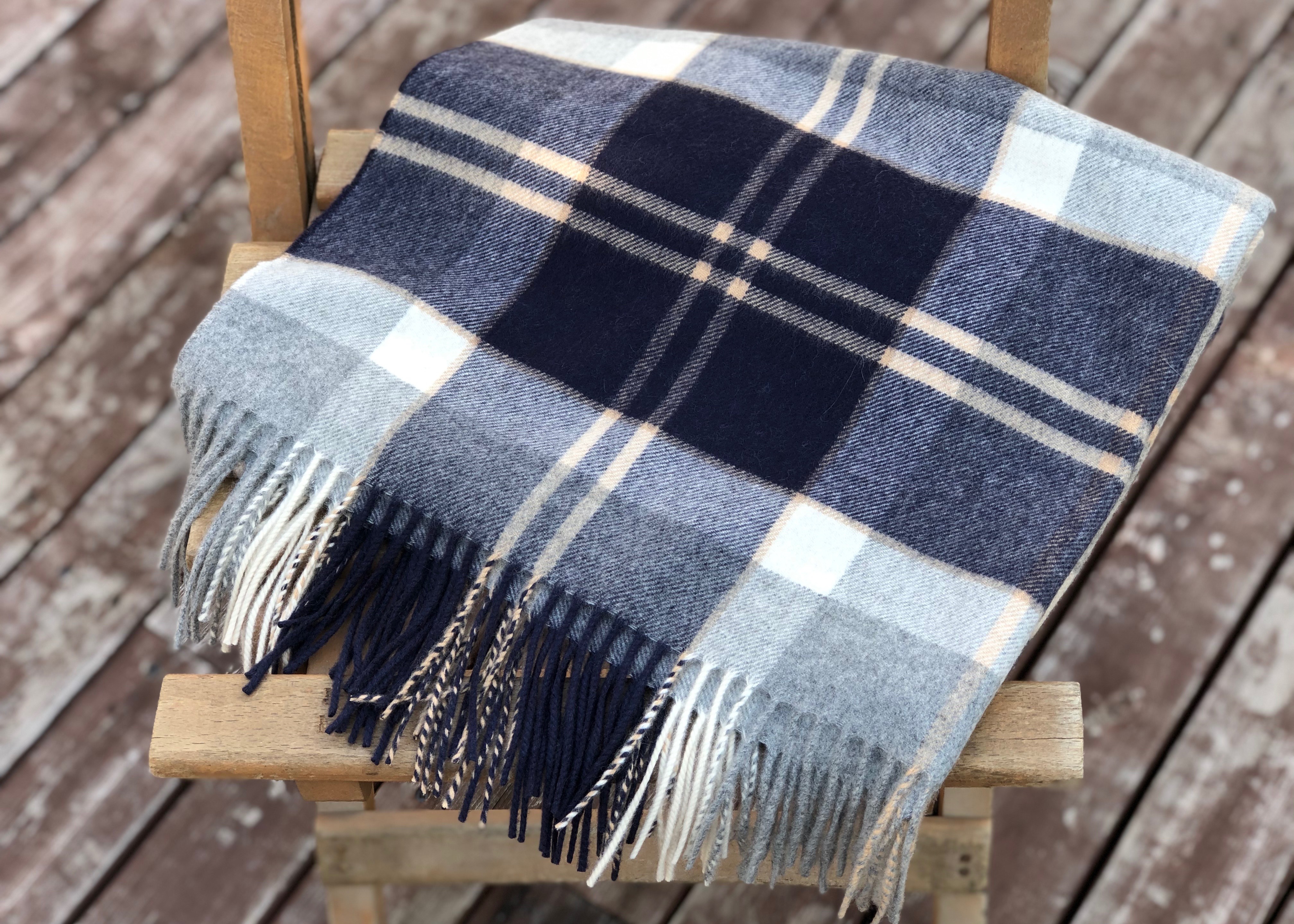 ネイビーとグレーのチェックで、コーディネートをふんわりと包み込んでくれます。