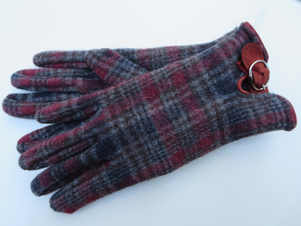こちらは、ウール素材のチェック柄グローブ。一枚仕立てですが、目が積んでいるのでとても手に吸いつく感じで、暖かいです。柄も落ち着いた雰囲気で、レザー使いとマッチしていて、素敵です。