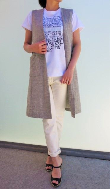 今が旬のロングジレ、"Harriss"より入荷致しました!リネン混の夏らしい生地で仕立てられた大人のジレ。中には、ロゴT&デニムでカジュアルに合わせてみました。ちょっとしたお出かけにもジレをさり気なくプラスしてお洒落な雰囲気で行ってみてはいかがでしょうか?シンプルな着こなしのアクセントに是非トライしてみてください!