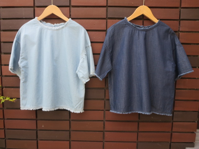 色は、サックス、インディゴの2色。コンパクトなシルエットで、ガウチョパンツやワイドパンツなどとも相性◎