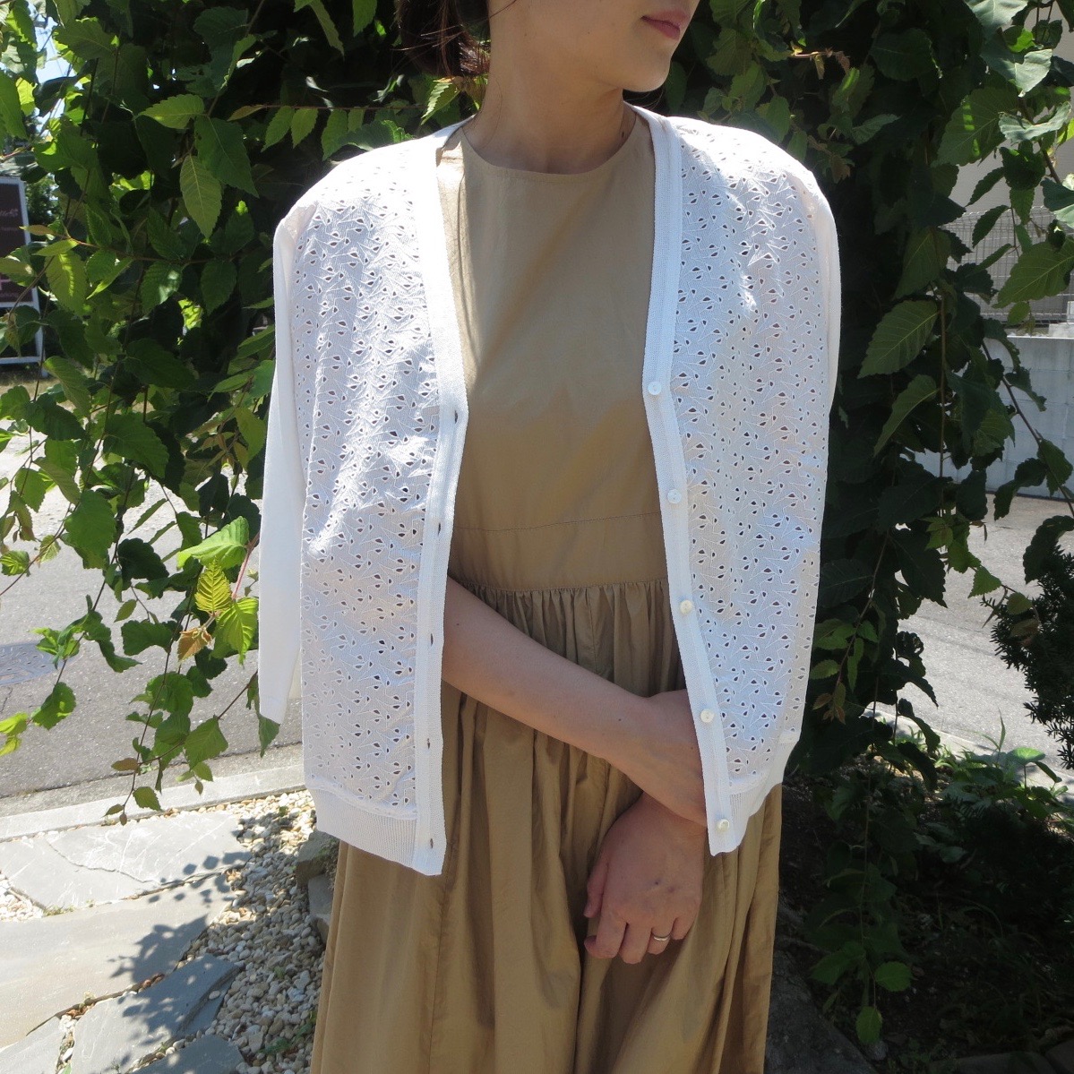 今日は朝から風と雨がすごかったですね。雨に少し濡れたせいか肌寒く、羽織りが欲しい1日となりました。もちろん晴れた日には、日焼け対策にも活躍してくれますので、早速カーディガンをご紹介します。