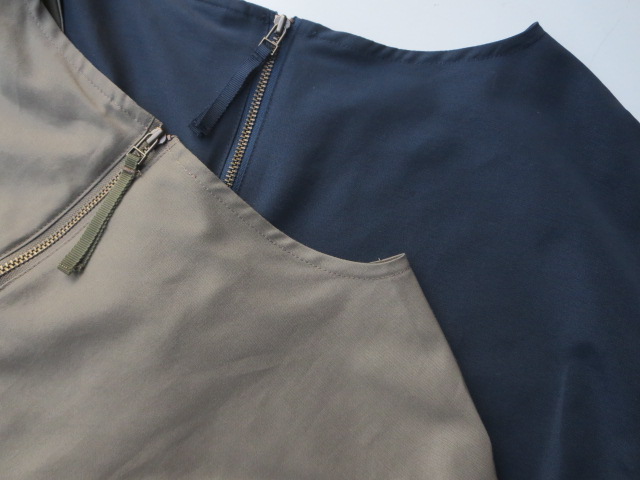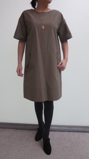 スポーティーなナイロン混のグログラン素材で仕立てられたミリタリーテイストのワンピース。シンプルなサックタイプなので、色々なコーディネイトを楽しめそうです!インナーにカットソーなど重ね着して、レイヤードしても良さそうですね。